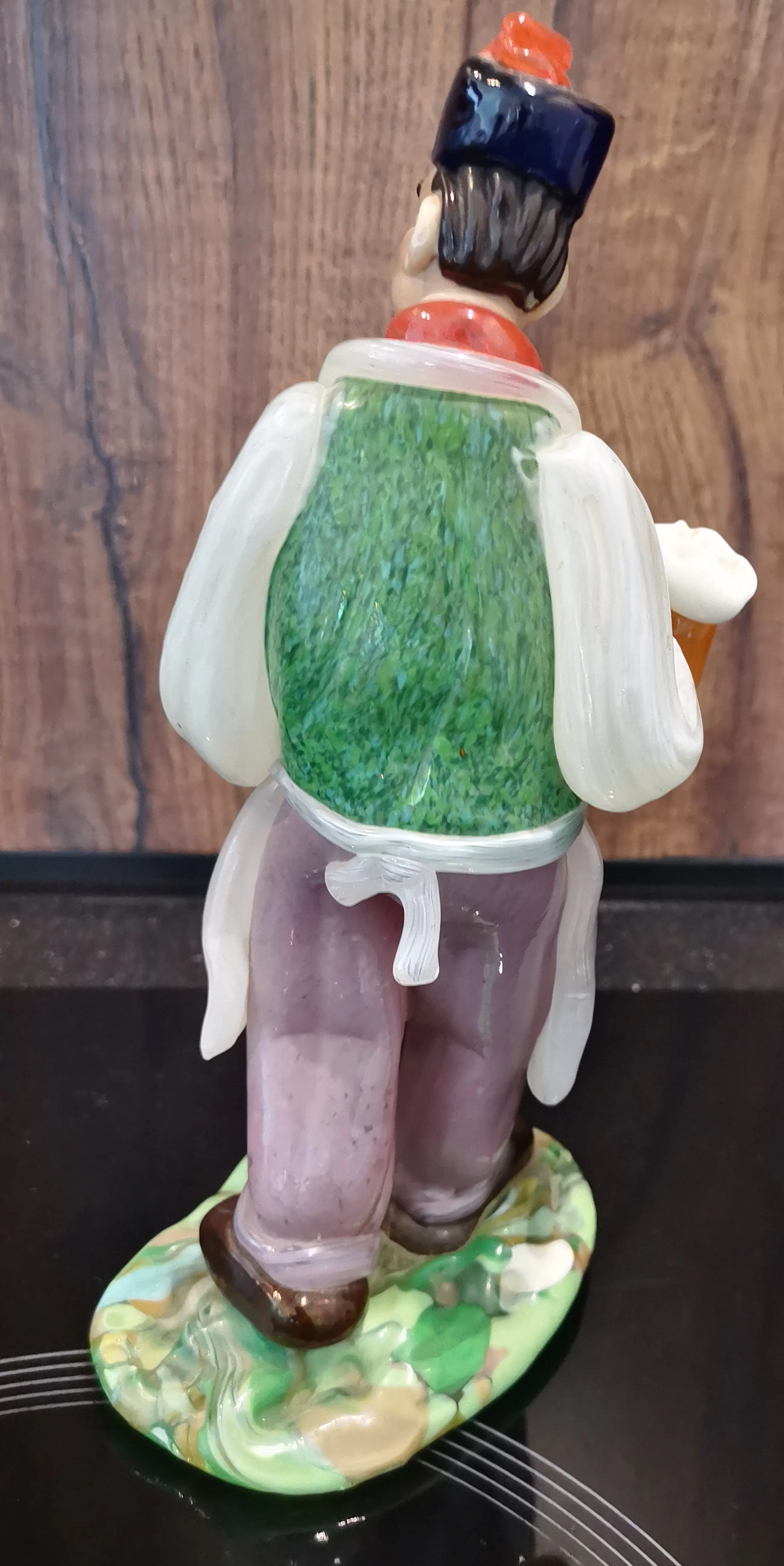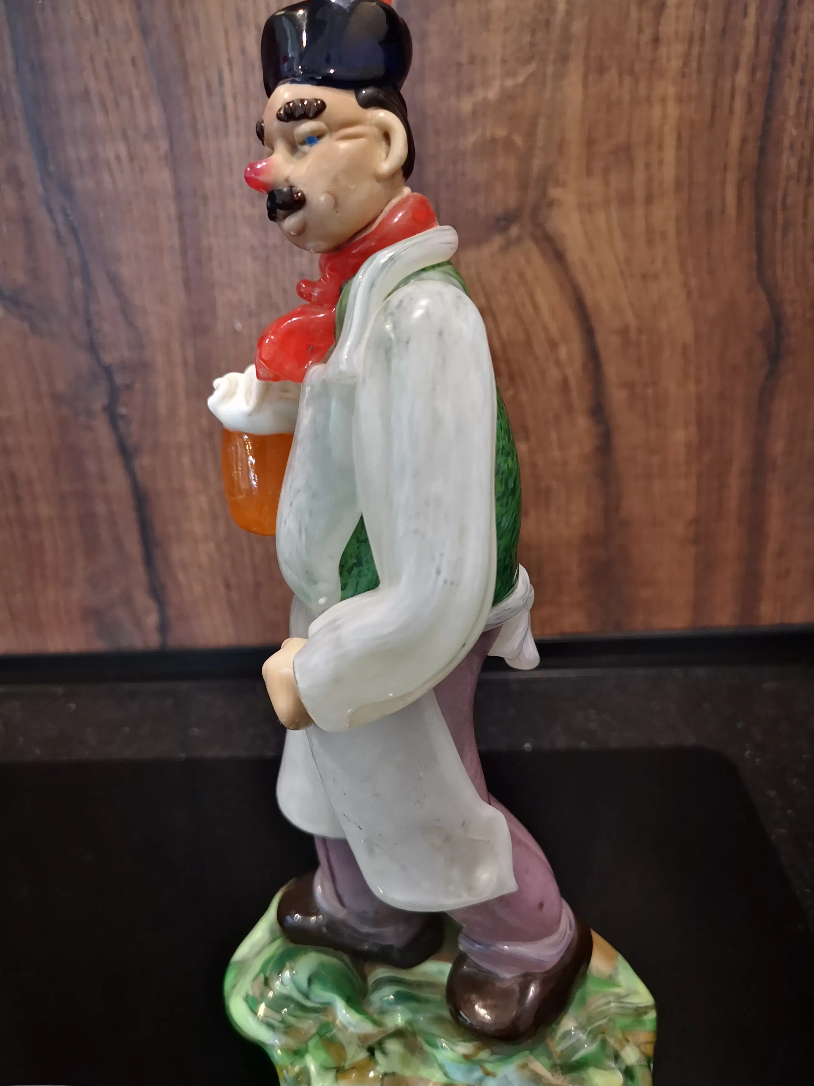 Prachtig handgeblazen glazen beeldje van een cafeman, vervaardigd door J. Brychta in Zelezny Brod rond 1930. Dit unieke stuk toont vakmanschap en is een charmante toevoeging aan elke collectie. Het beeldje verkeert in uitstekende staat en is een zeldzaam voorbeeld van Tsjechisch glaswerk uit die periode.
