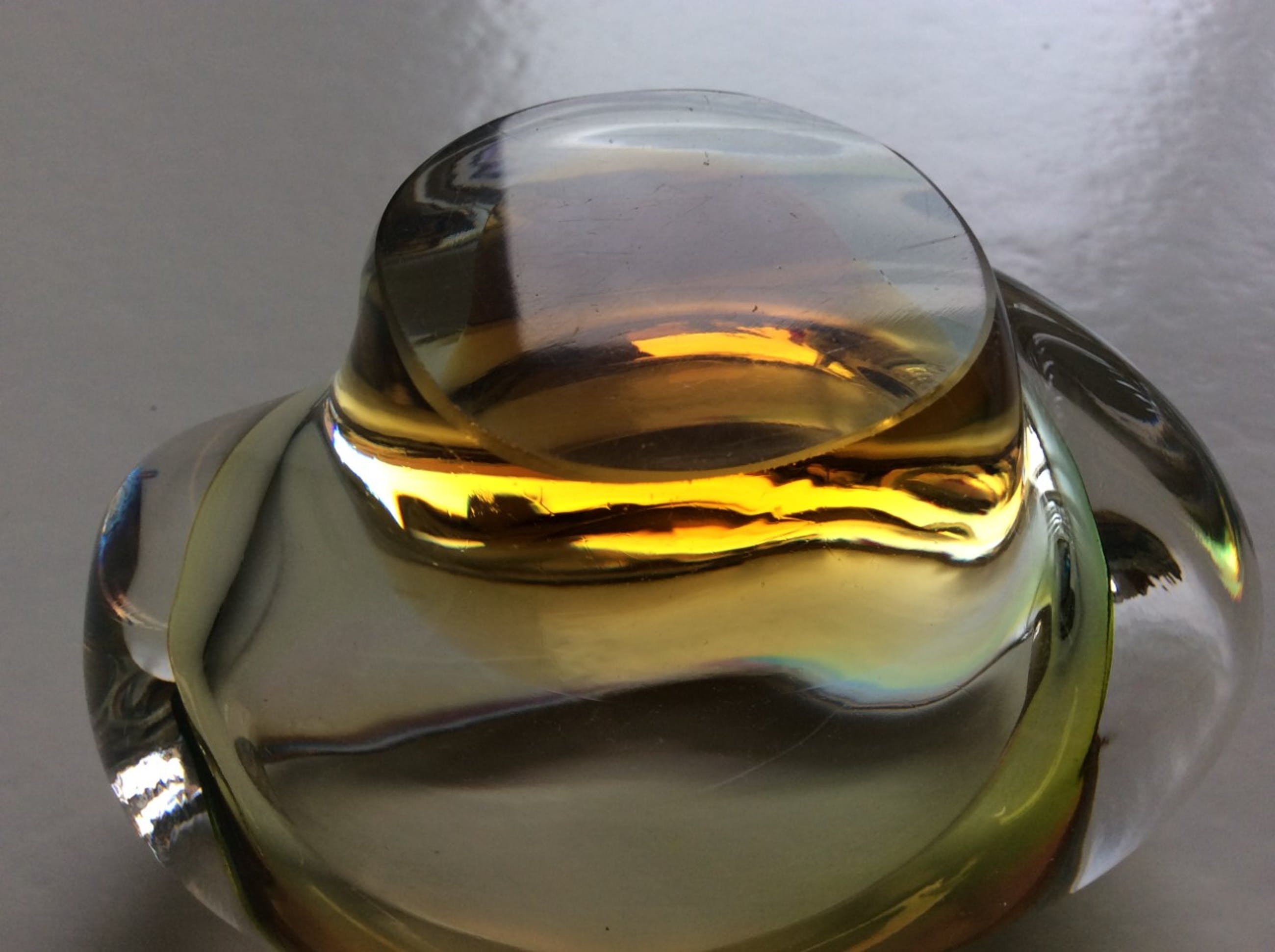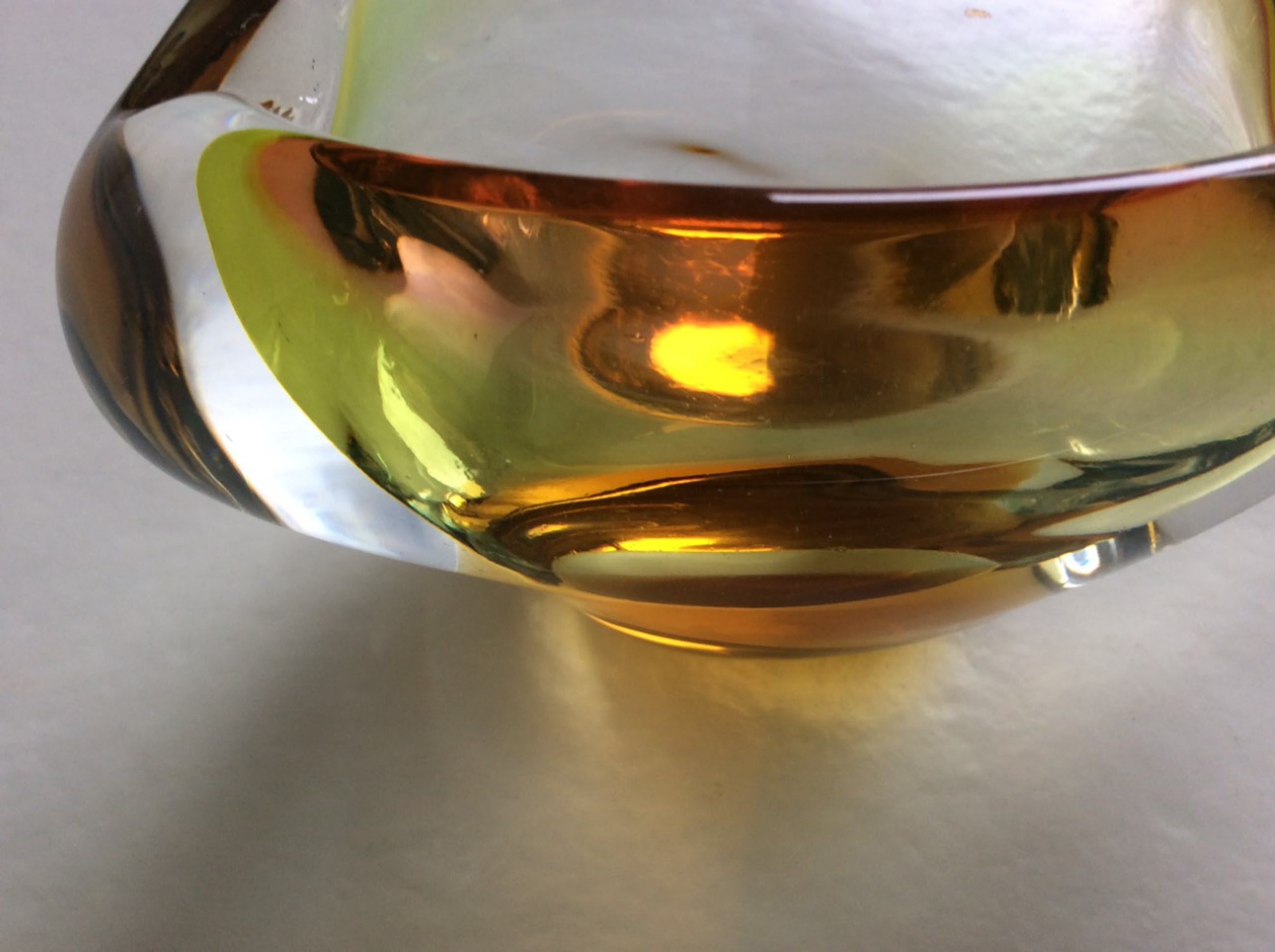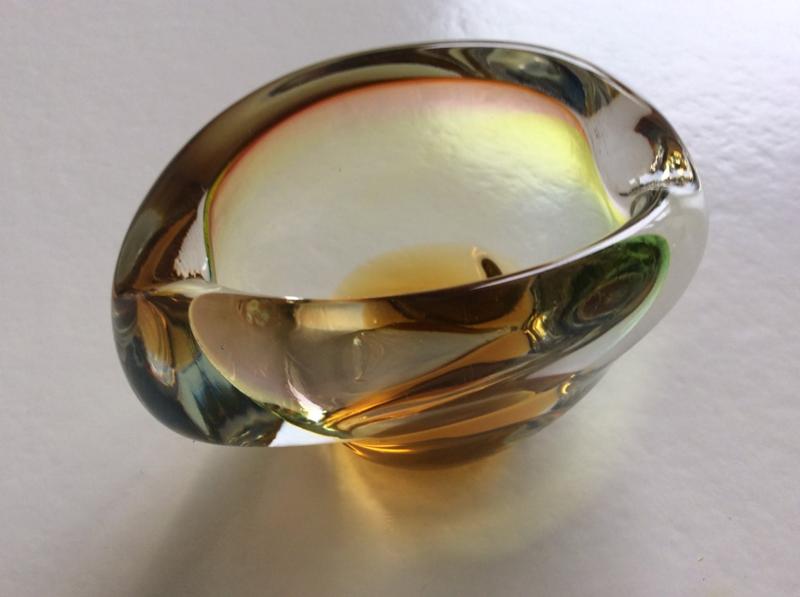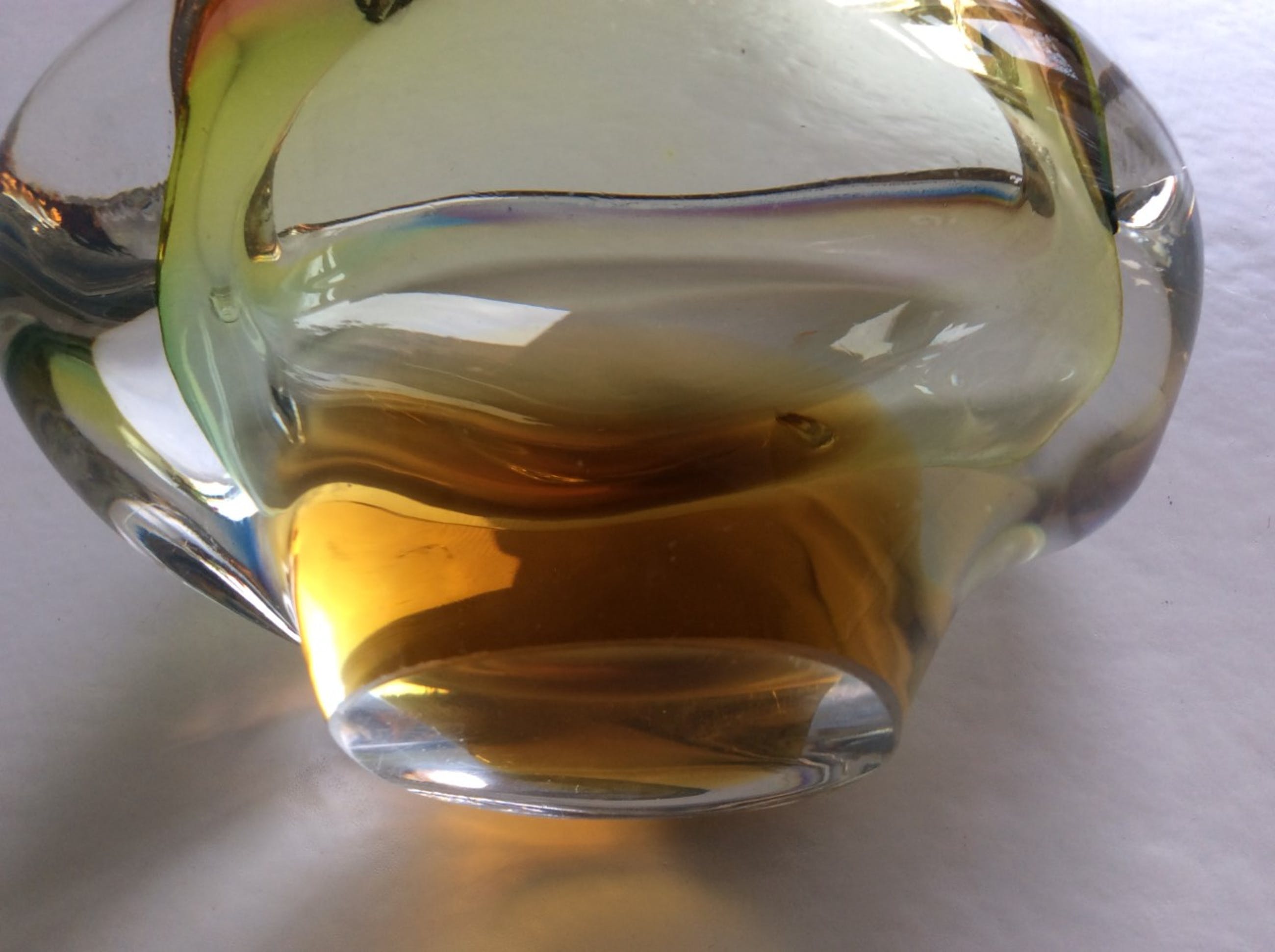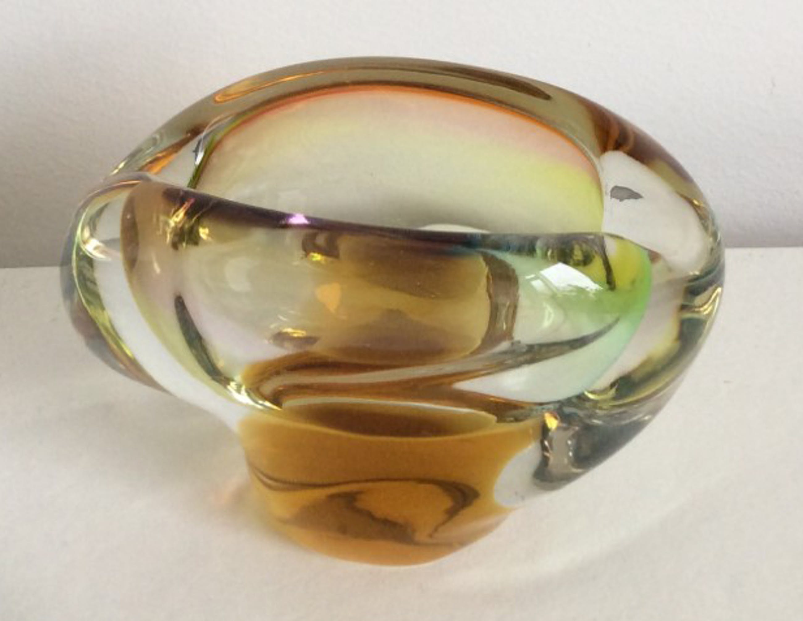 Zelezny Brod voor Sklo: fraai gekleurd massief glazen object, Tsjechië, ca 1970.Hoogte ca. 7,5 cm, max. breedte ca. 12 cm. Gewicht 628. Niet gesigneerd.zeer minimale gebruikssporen.