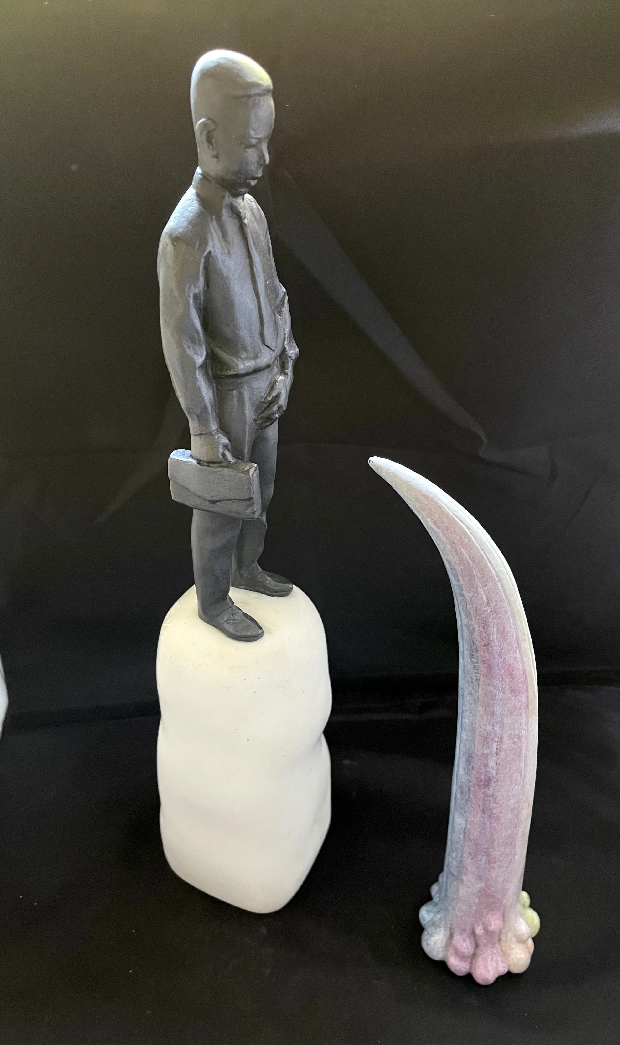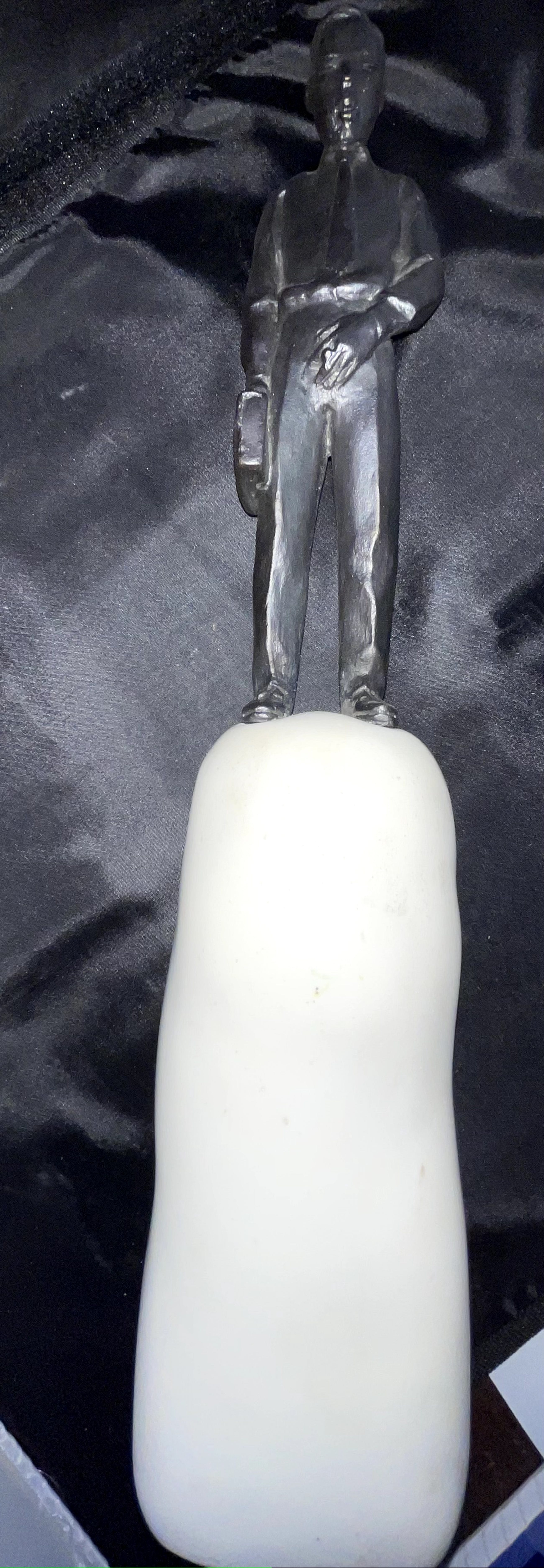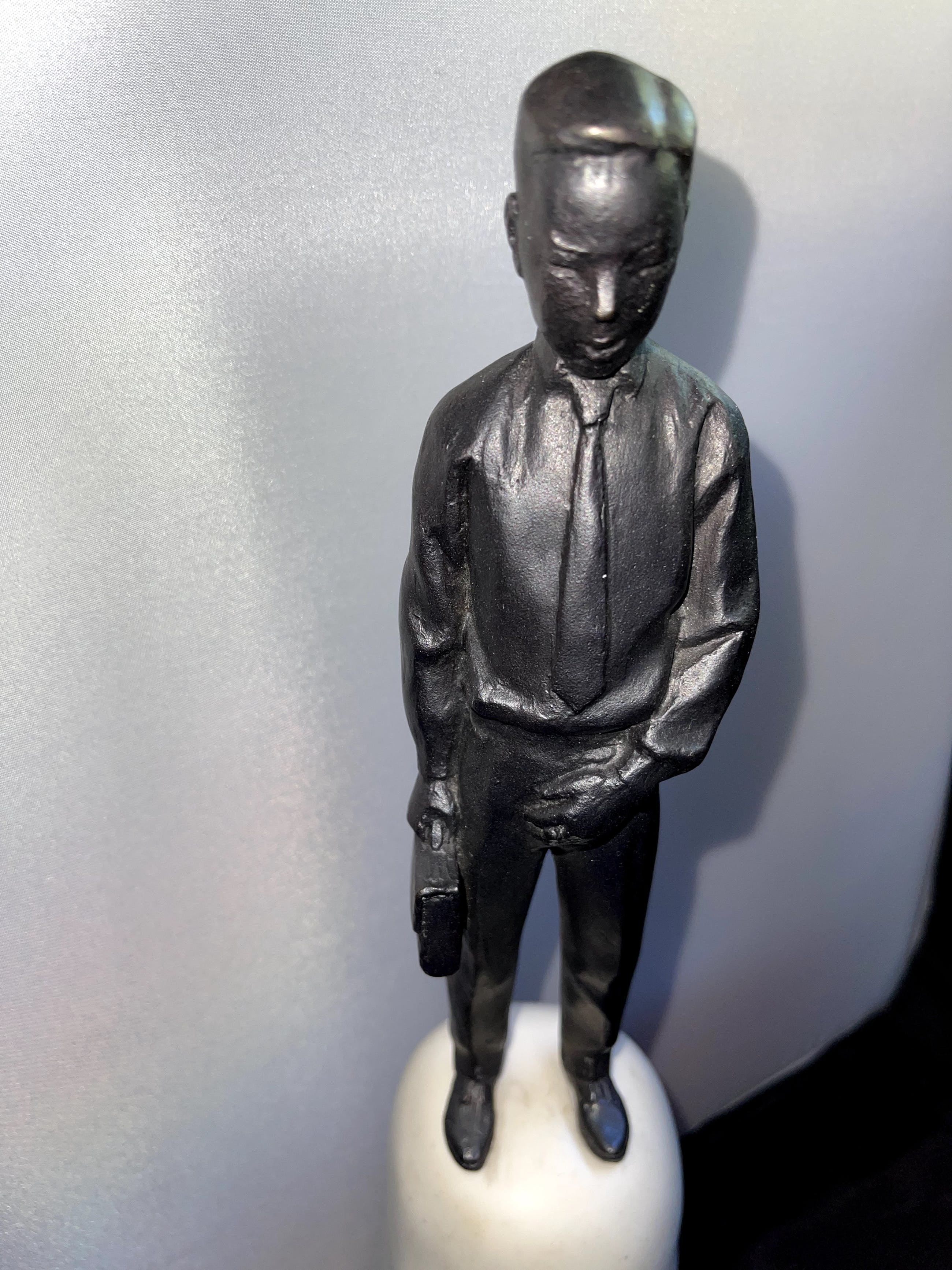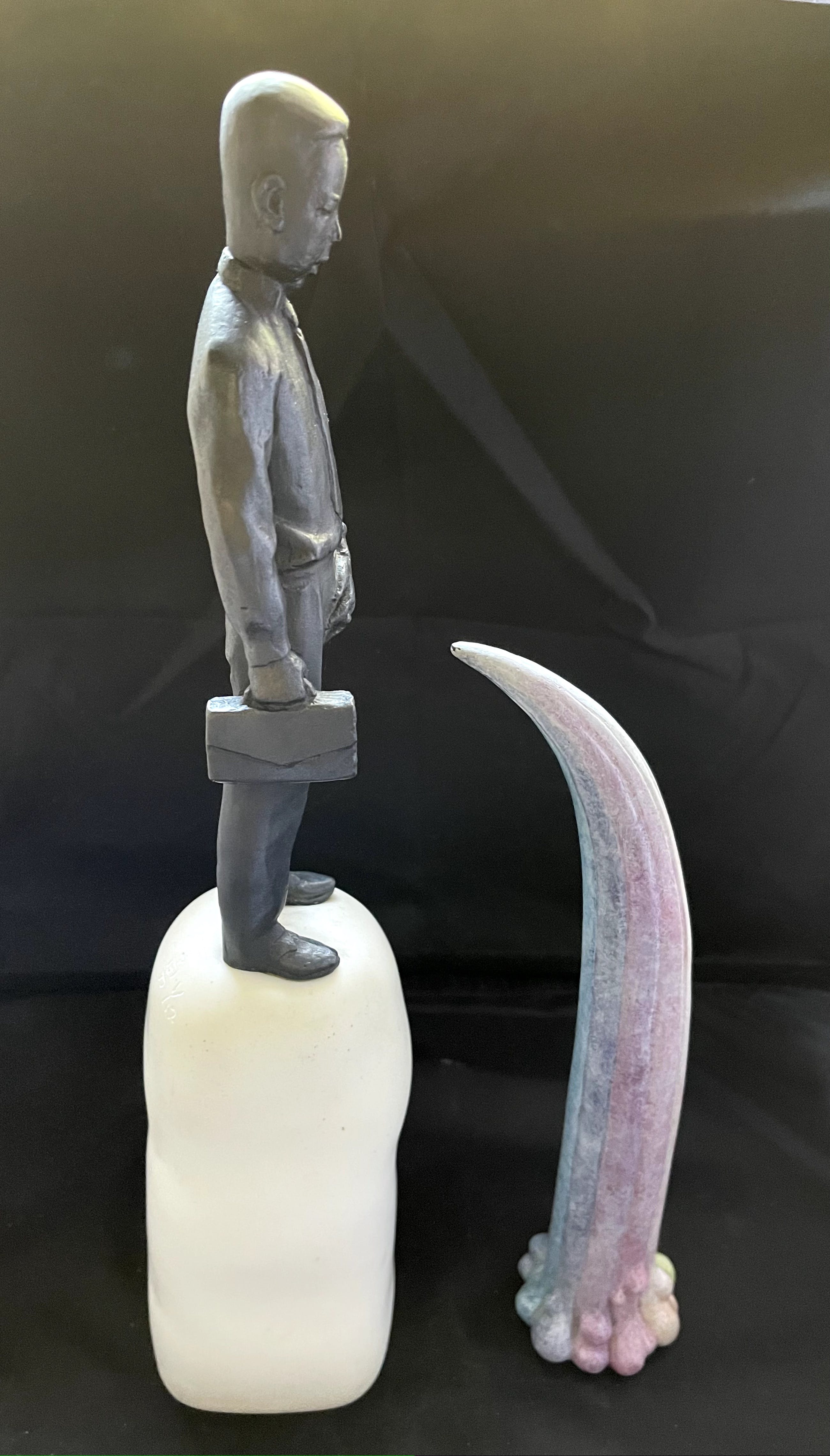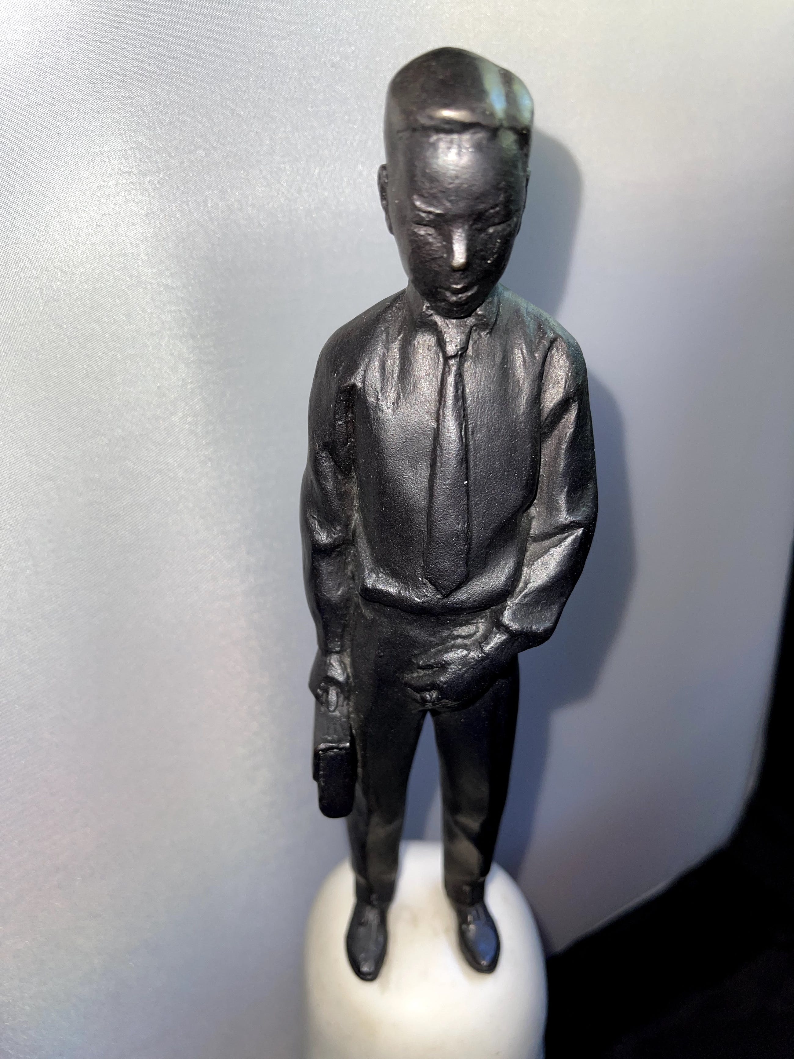 Rainbow is een bronzen voorstelling van een man terugkomend van zijn kantoor op weg naar huis en die in de haast zijn blaas moet ledigen... Zhang Yong heeft dit beeld uitgevoerd met veel humor. De man staat met zijn aktetas in de hand te urineren en het was ws hoge nood gezien de grote straal. Bij de uitvoering heeft hij het beeld op een marmeren sokkel gezet en de straat urine veelkleurig gepatineerd in contrast met de in zwart uitgevoerde man. Oplage 1/12; wordt met certificaat geleverd.