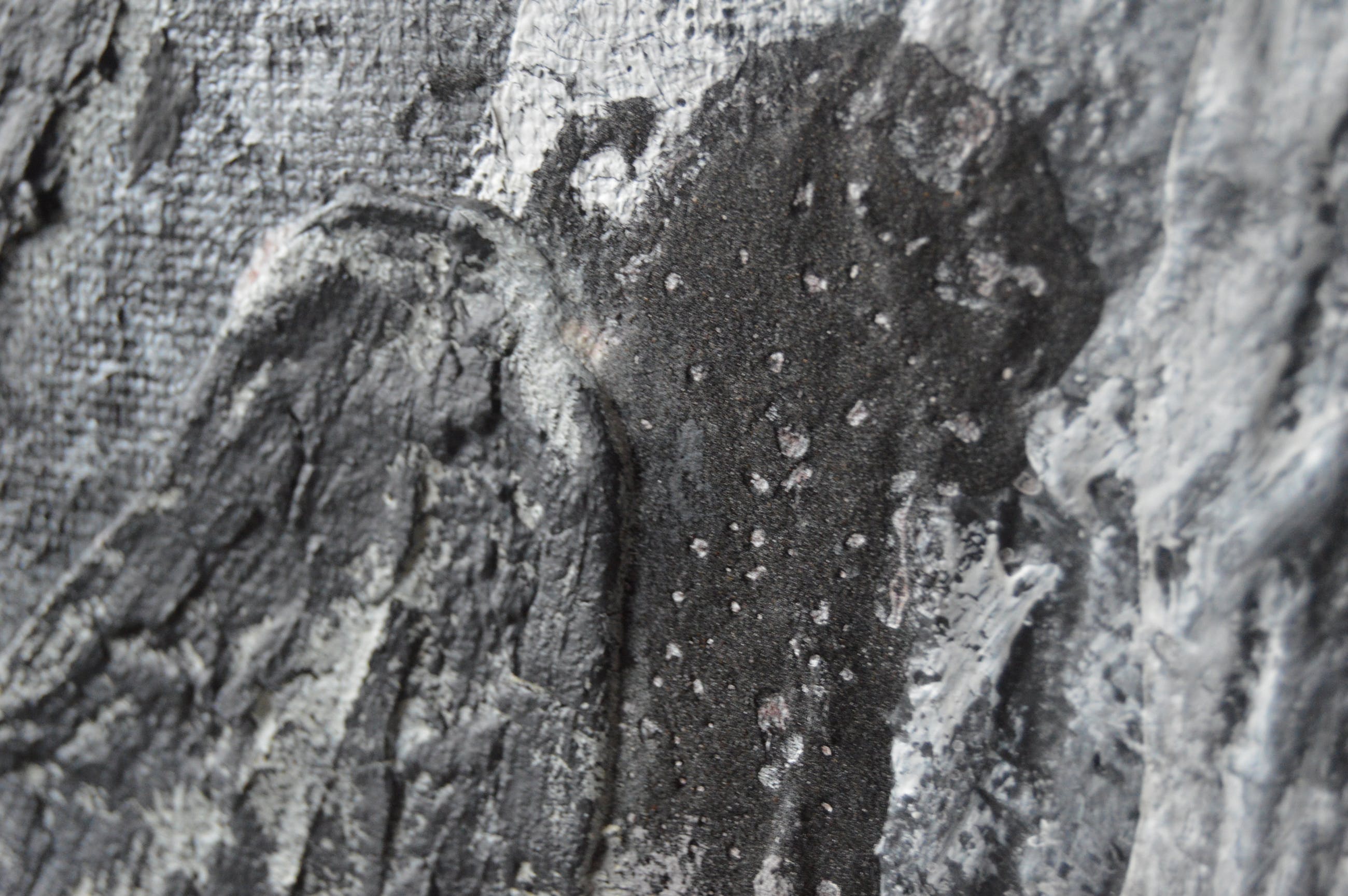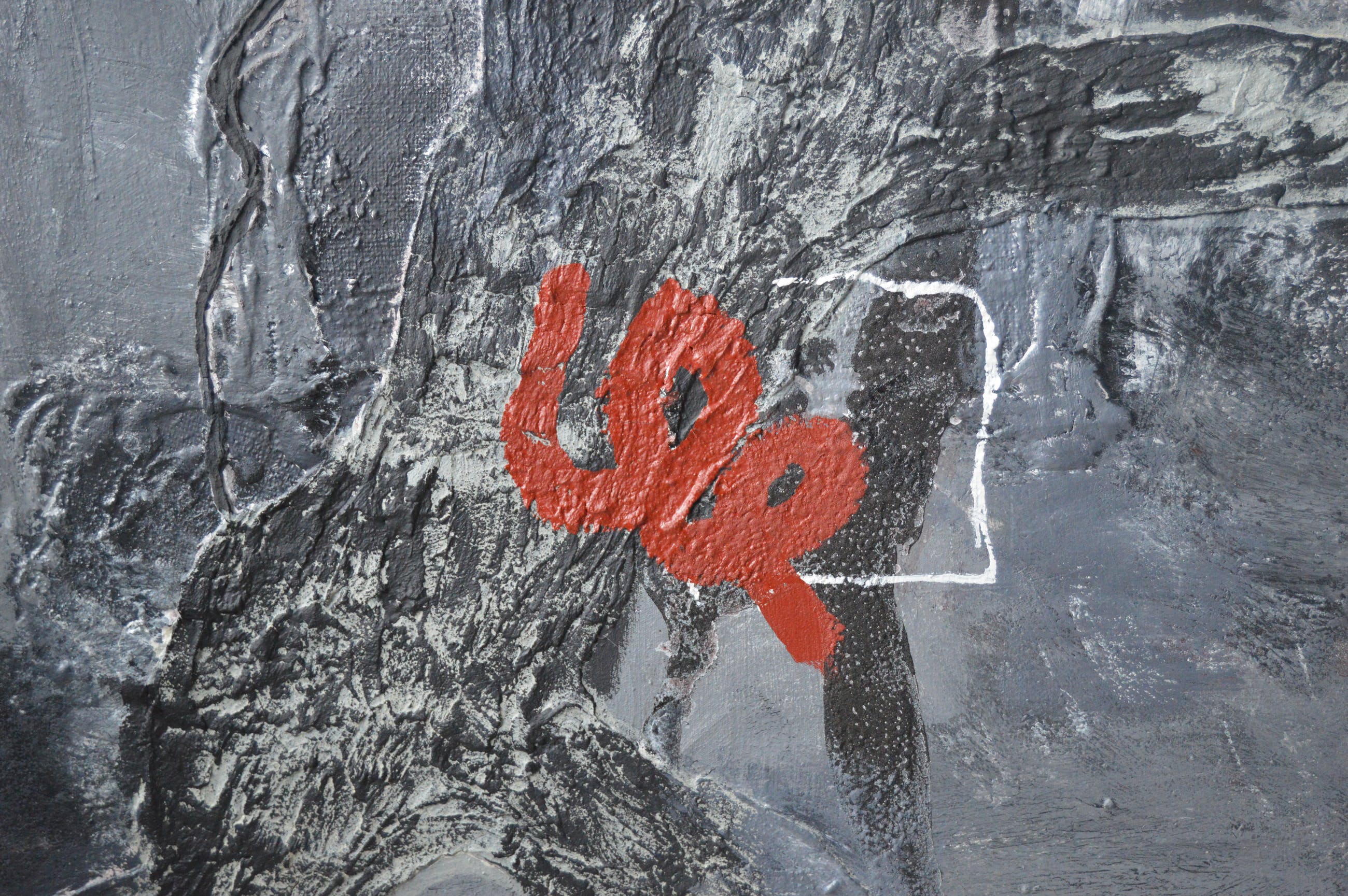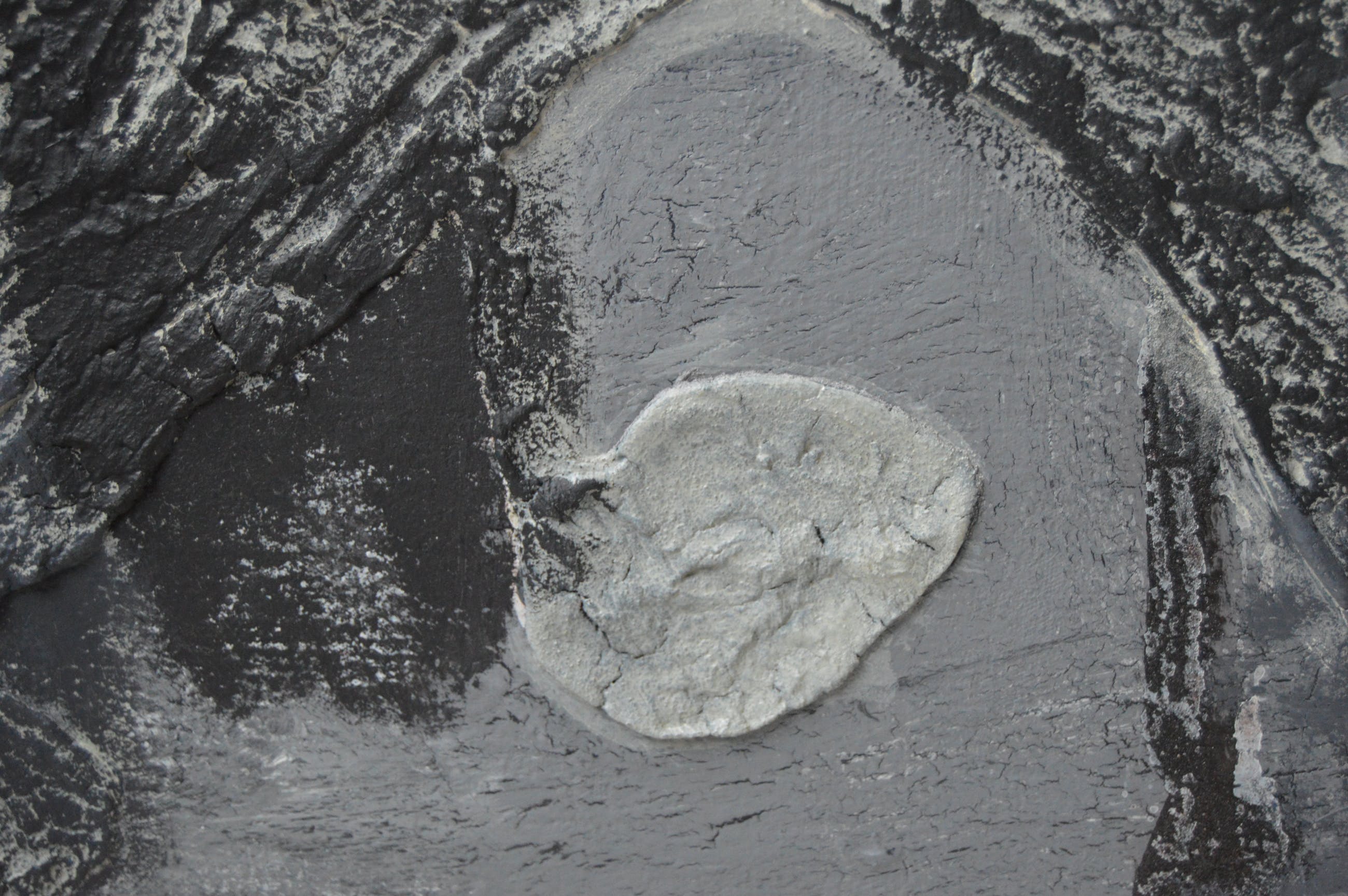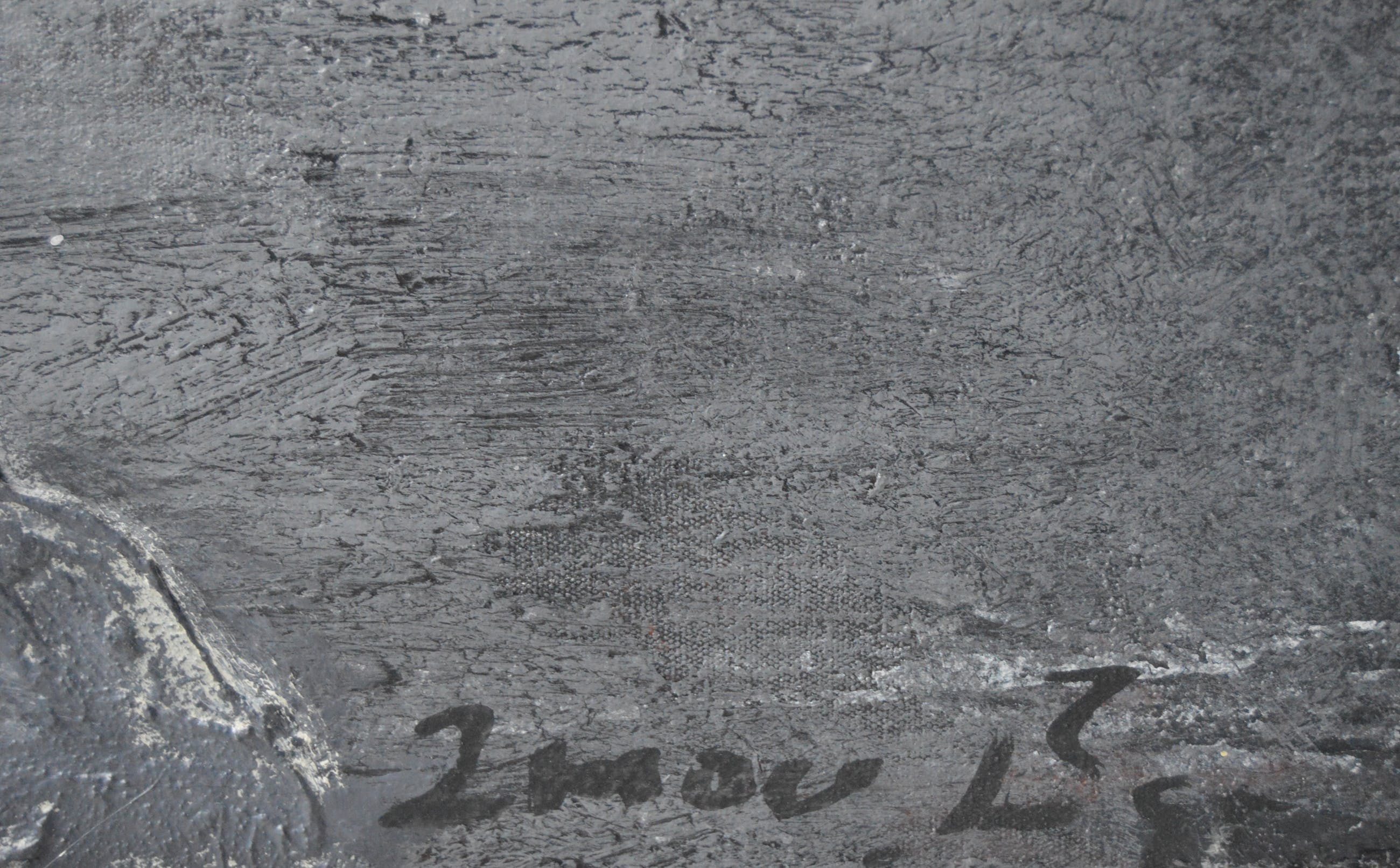 Titel: Dark Night Jaartal: 1995 Afmetingen doek: 122,5 cm x 91,5 cm Gesigneerd: Ja, handgeschreven (rechtsonder en verso) Materiaal: Materie + olieverf op doek Ingelijst: Nee, op spieraam Conditie: In zeer goede staat. Kan alleen worden opgehaald.
