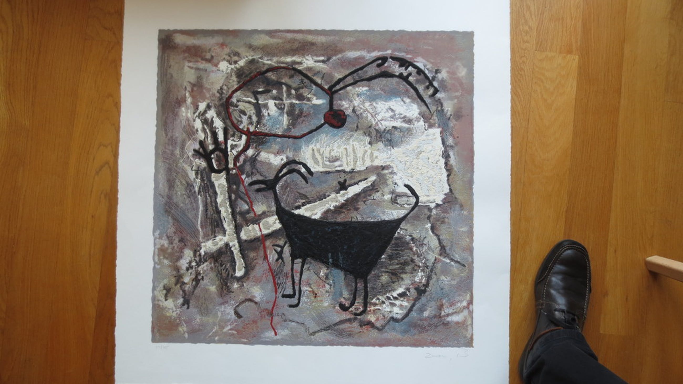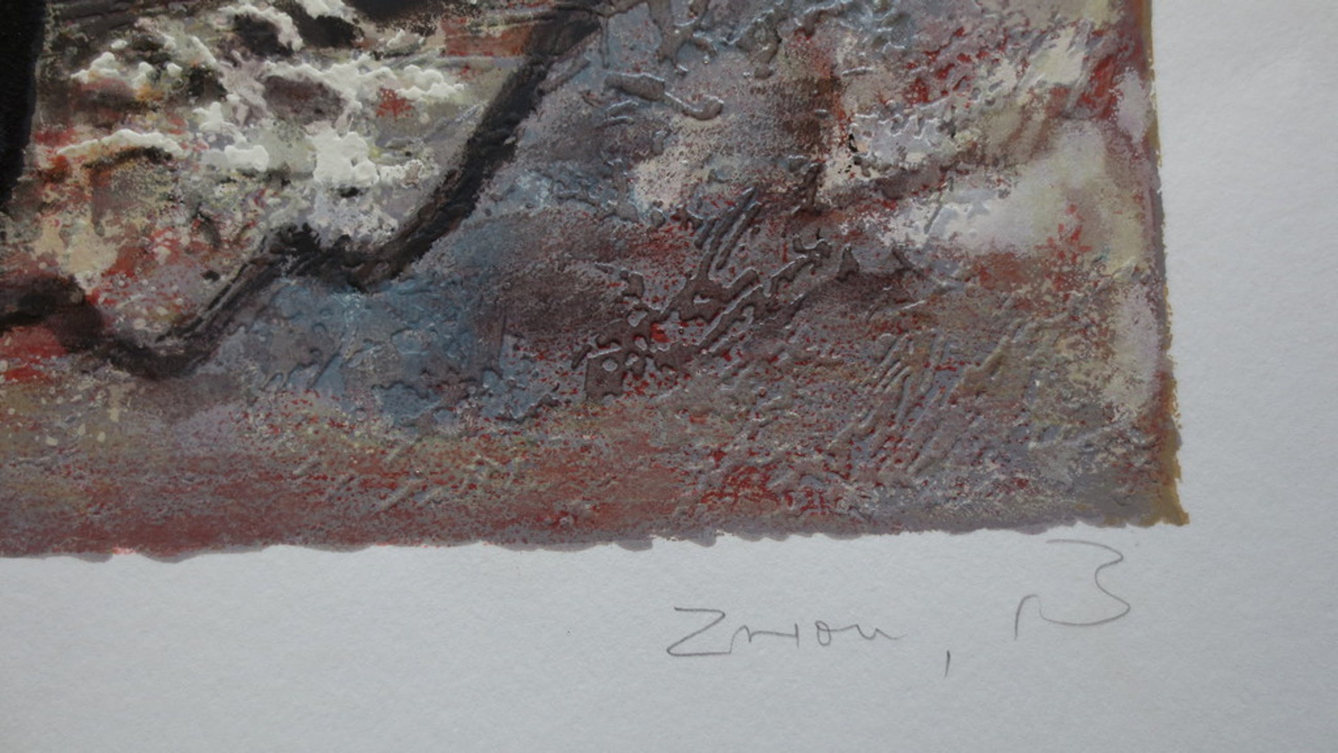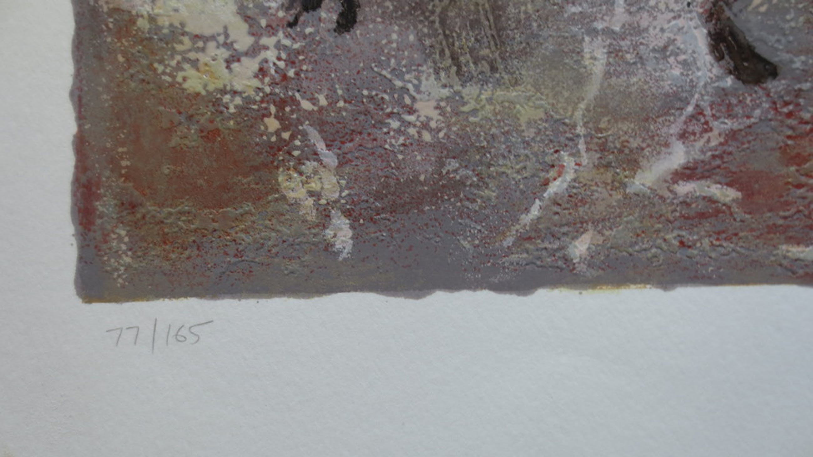 Fraaie terragafure met veel reliëf. Titel "Nature and I" Afmeting blad 78x78 cm. Afbeelding 62,5x63 cm. Oplage 165. Dit is nummer 11 (of 77?) In potlood gesigneerd en genummerd.