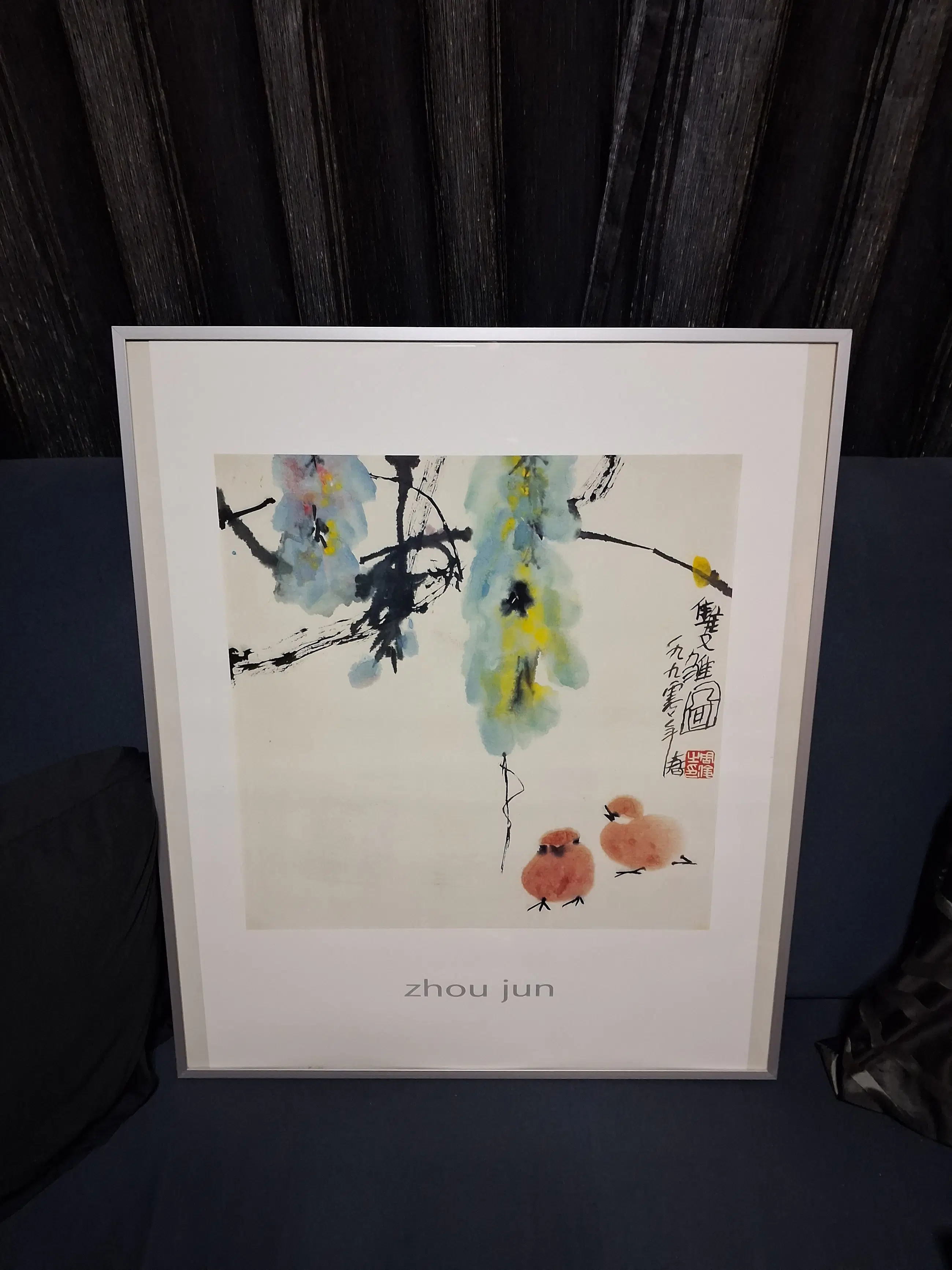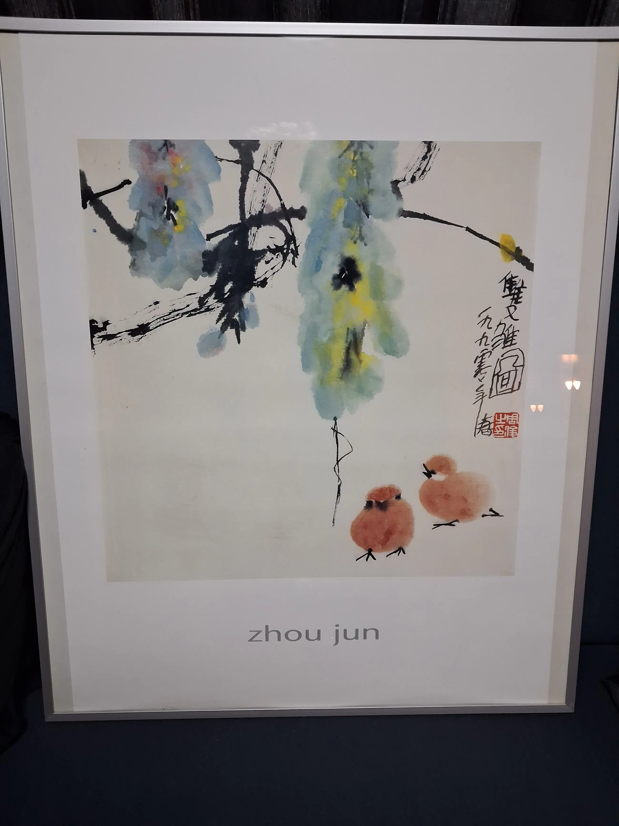 Prachtige litho/zeefdruk/print van Zhou Jun. In mooie nette metalen lijst.