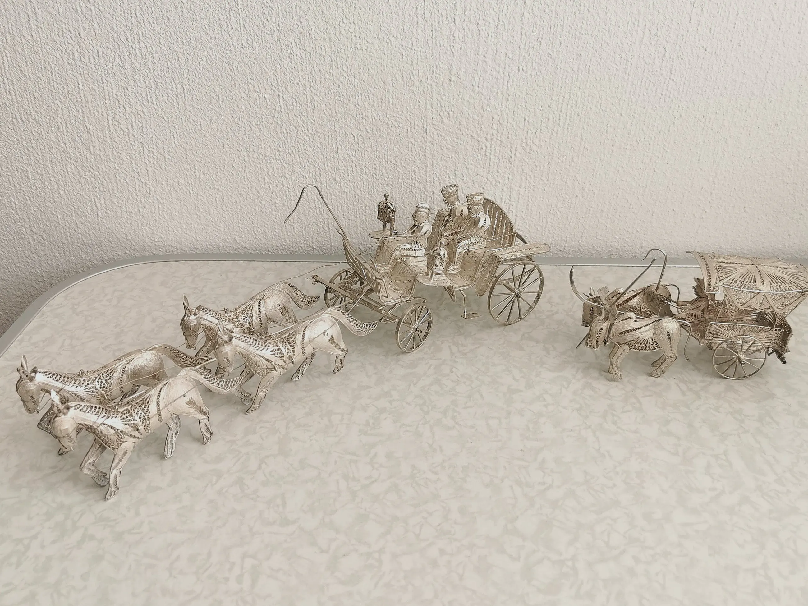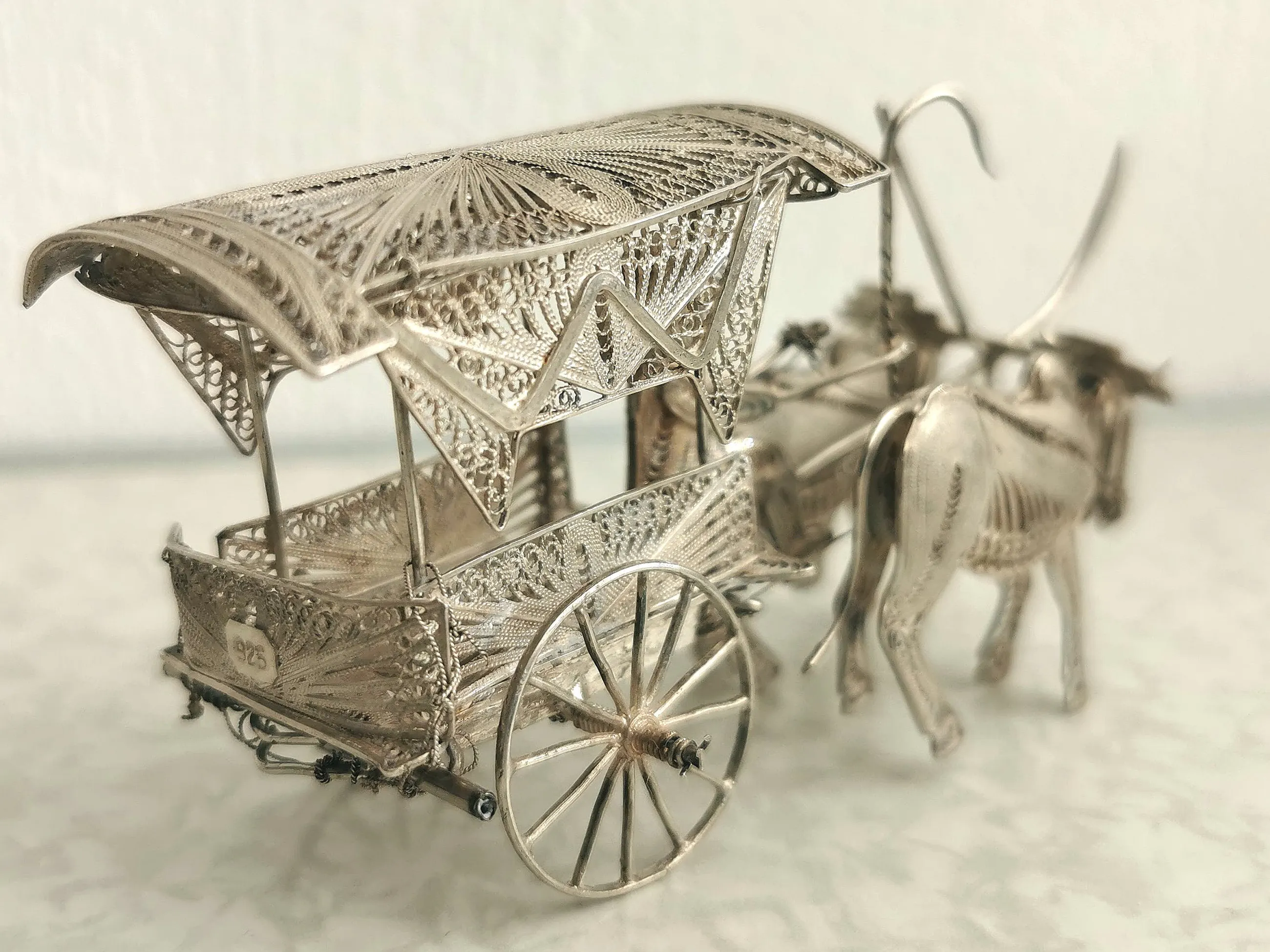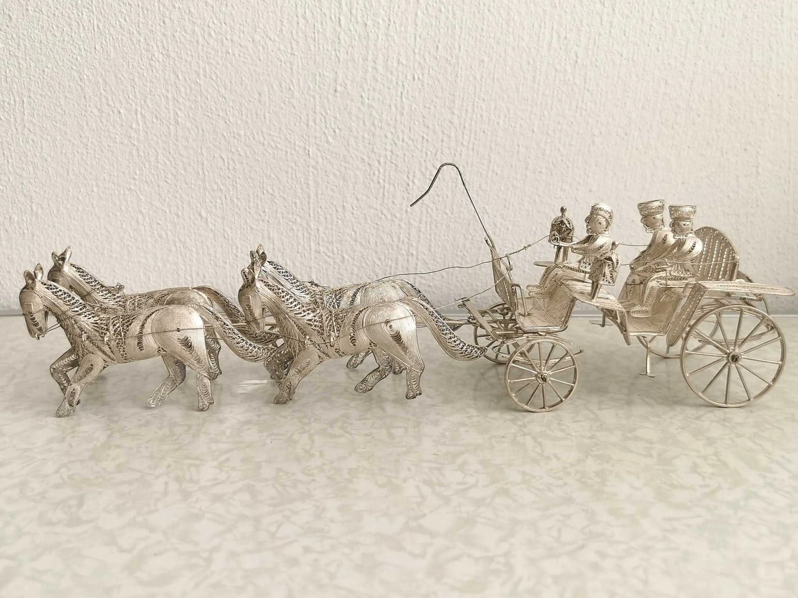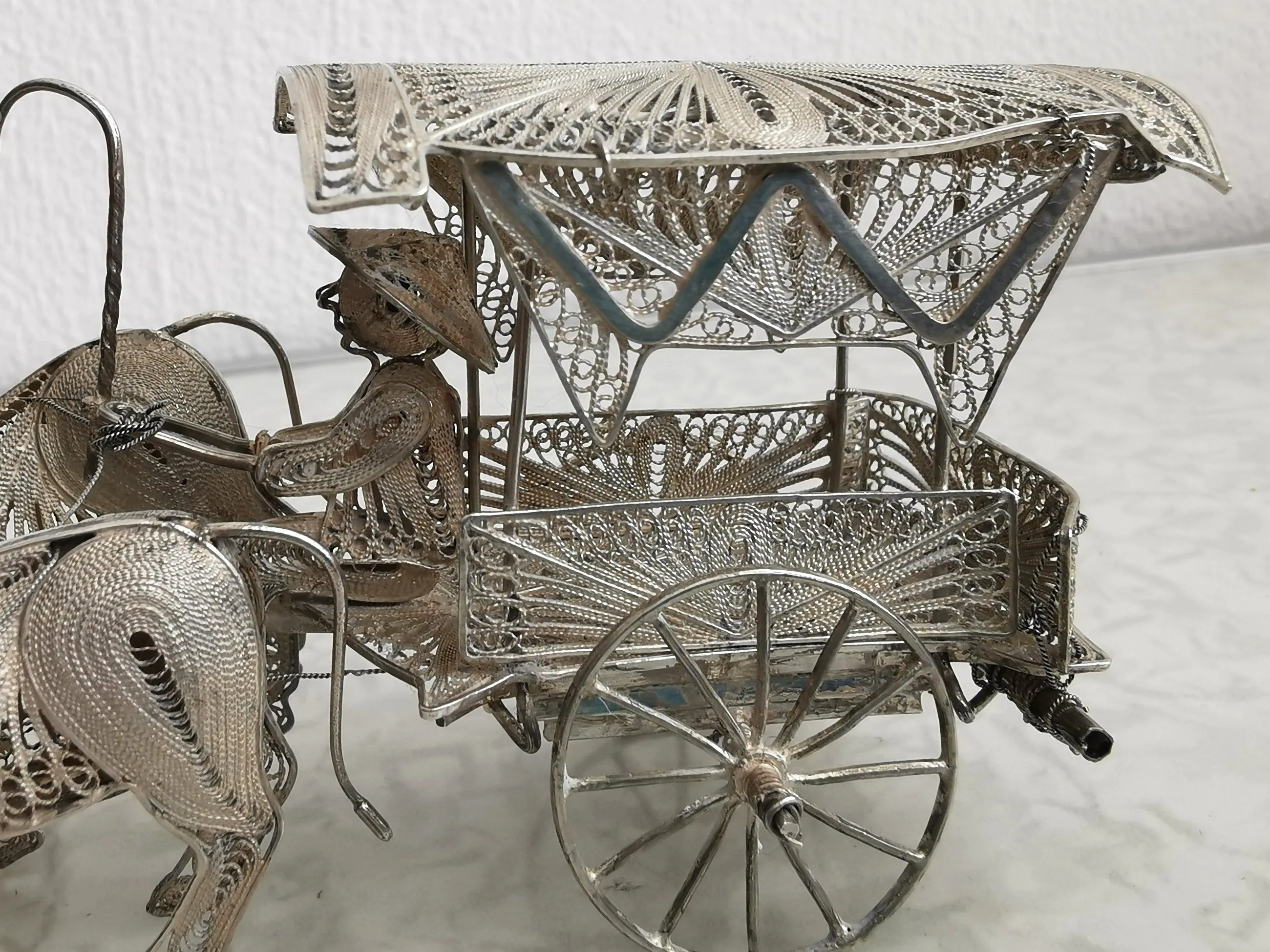 Prachtige Indonesische paardenkoets en ossenwagen in filigrain zilver. Beide zijn vervaardigd uit - eerst gehalte - sterling zilver (merk 925).