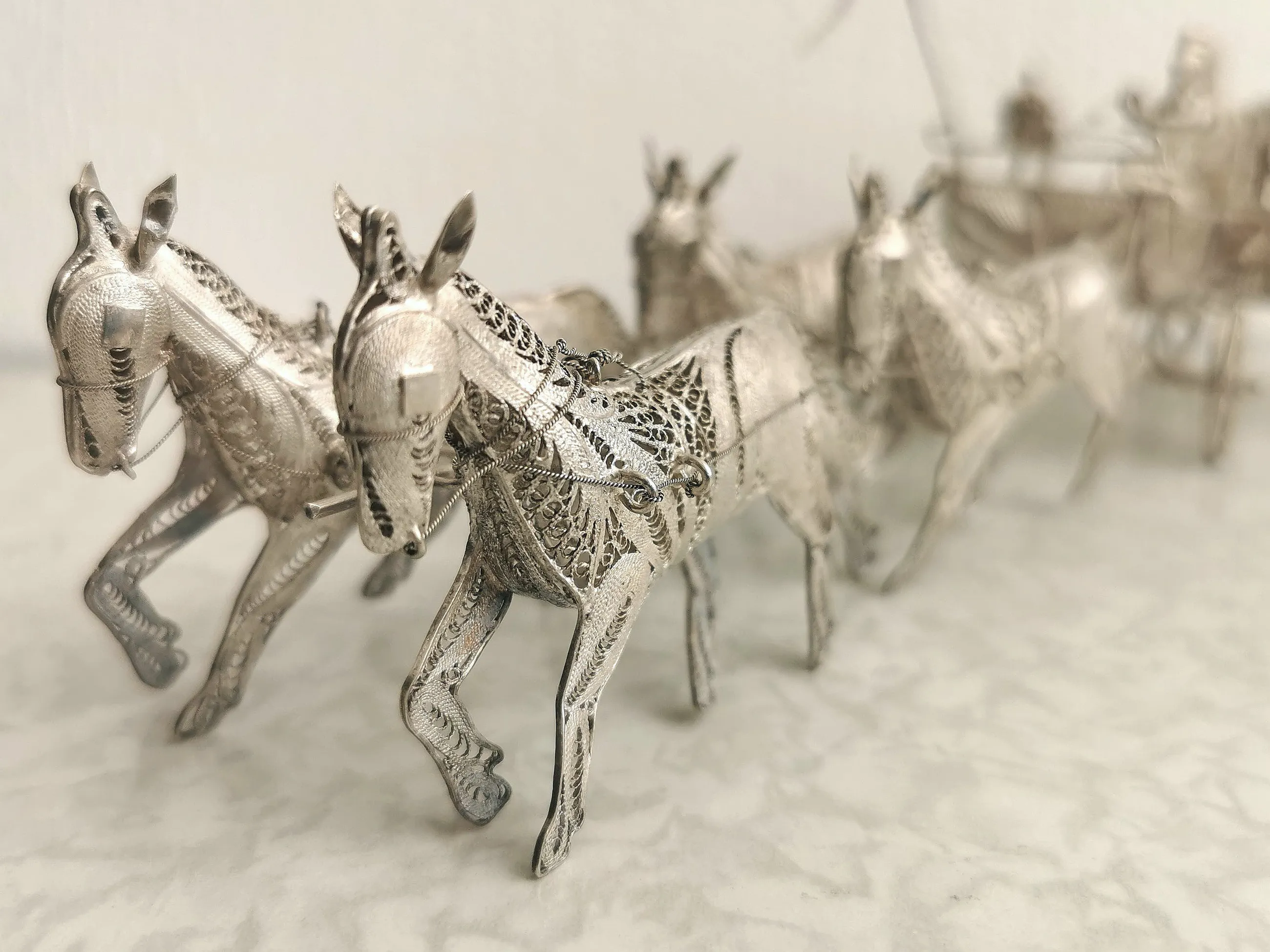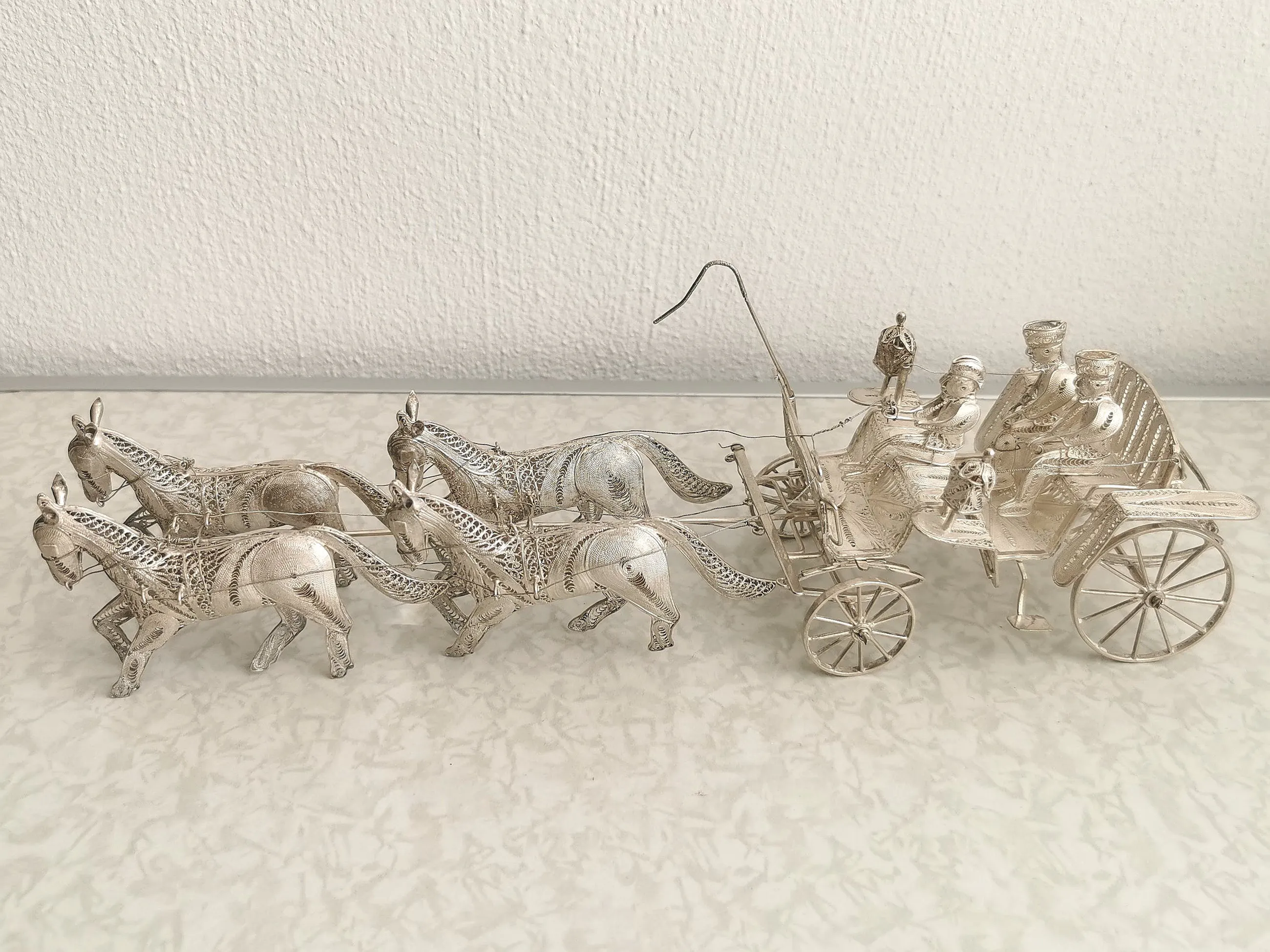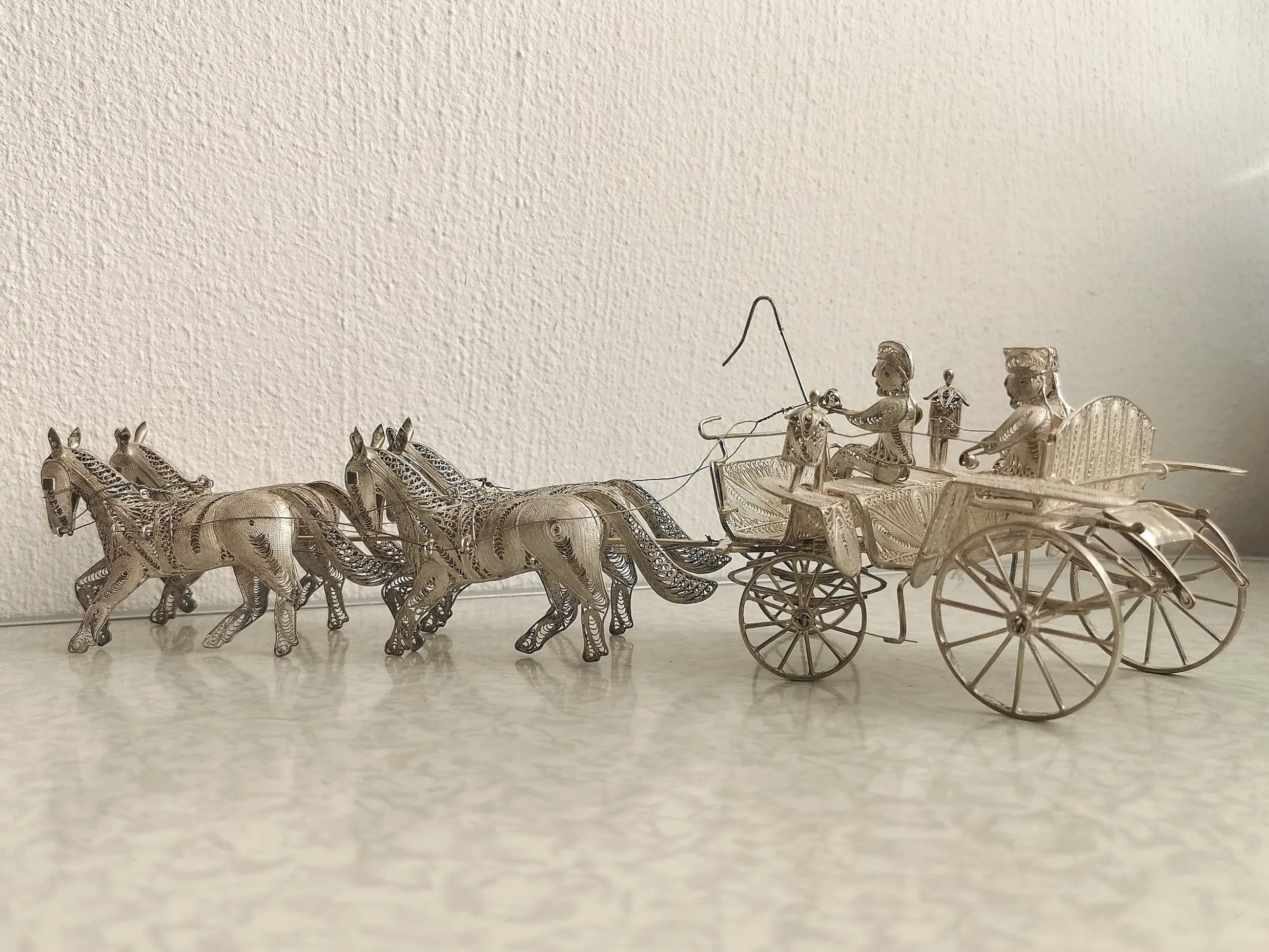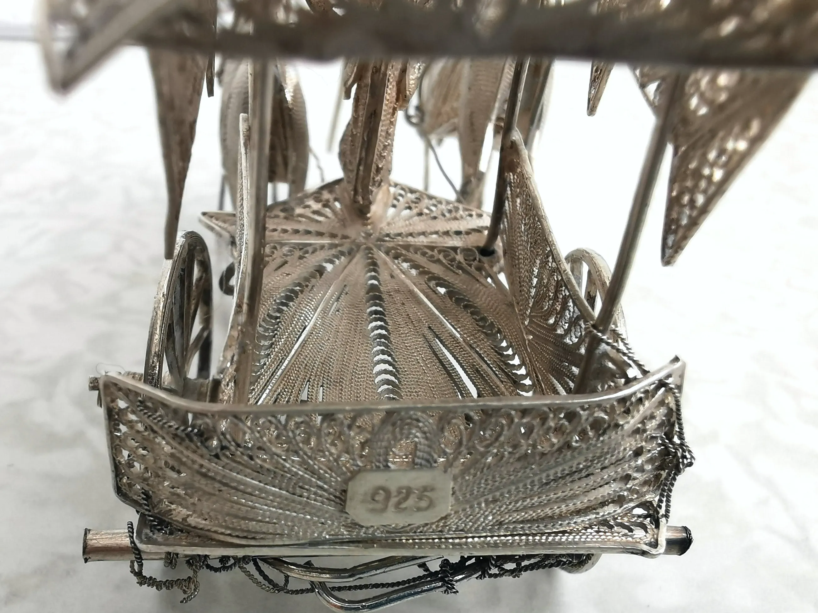 Prachtige Indonesische paardenkoets en ossenwagen in filigrain zilver. Beide zijn vervaardigd uit - eerst gehalte - sterling zilver (merk 925).