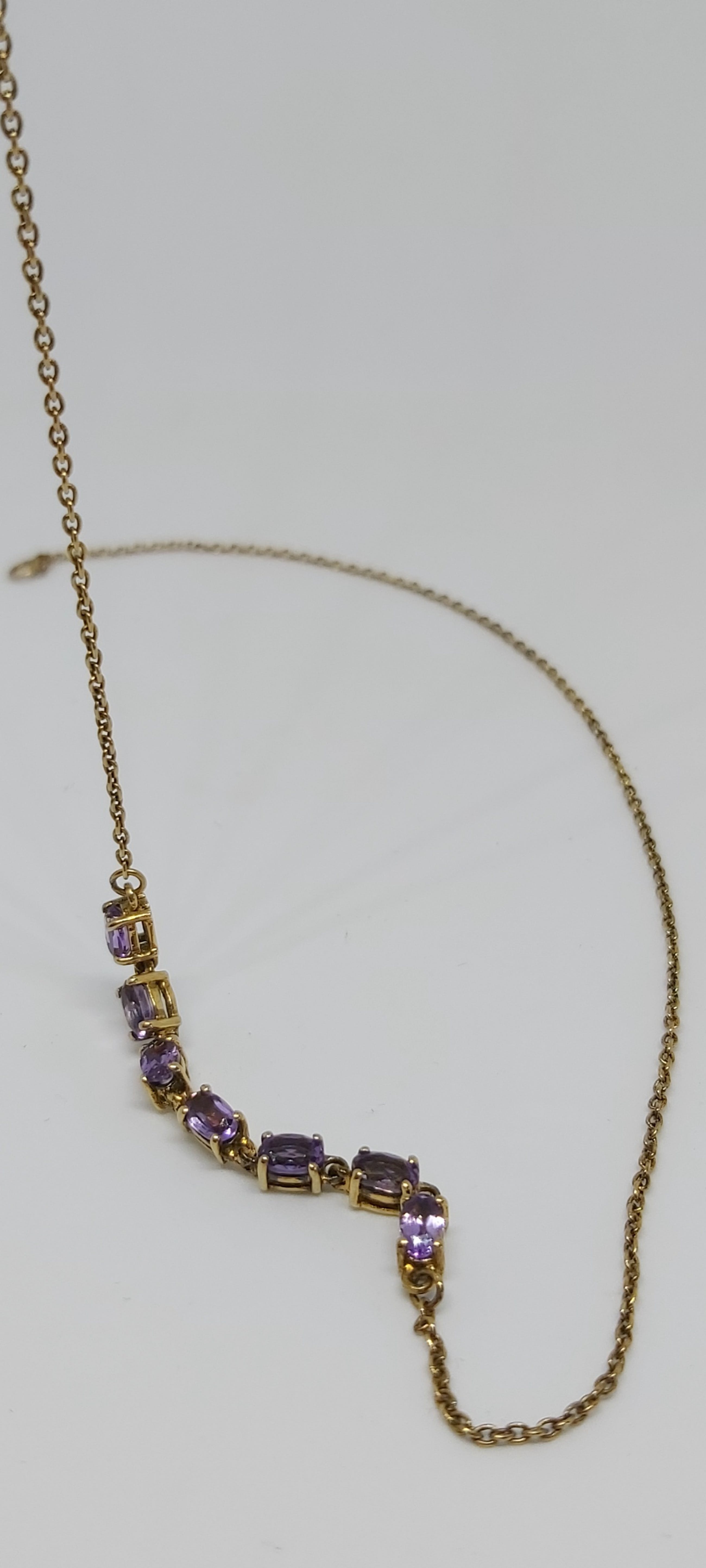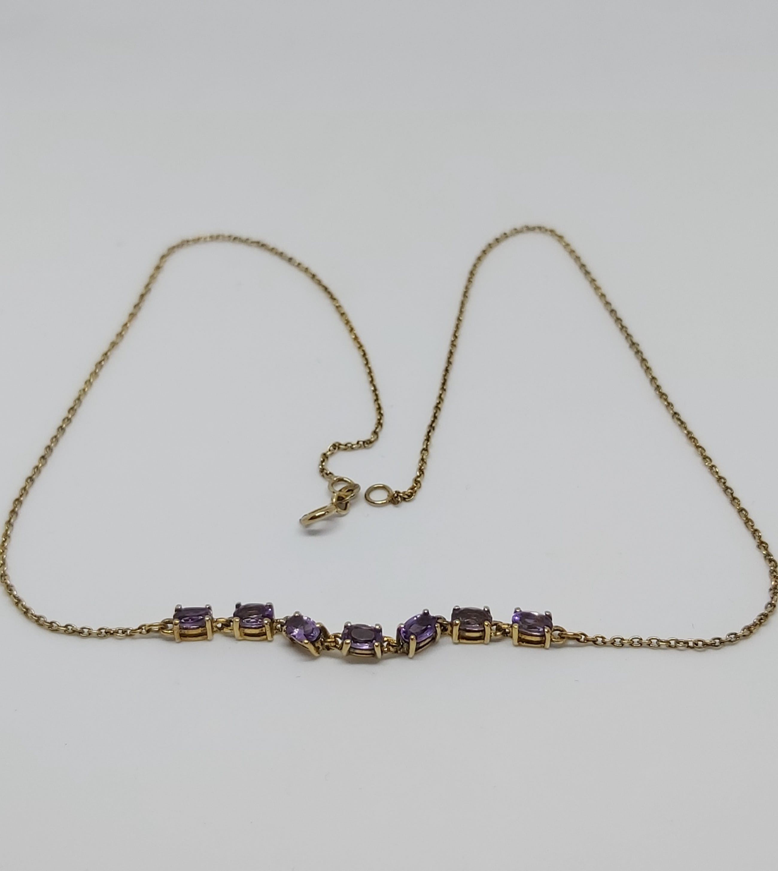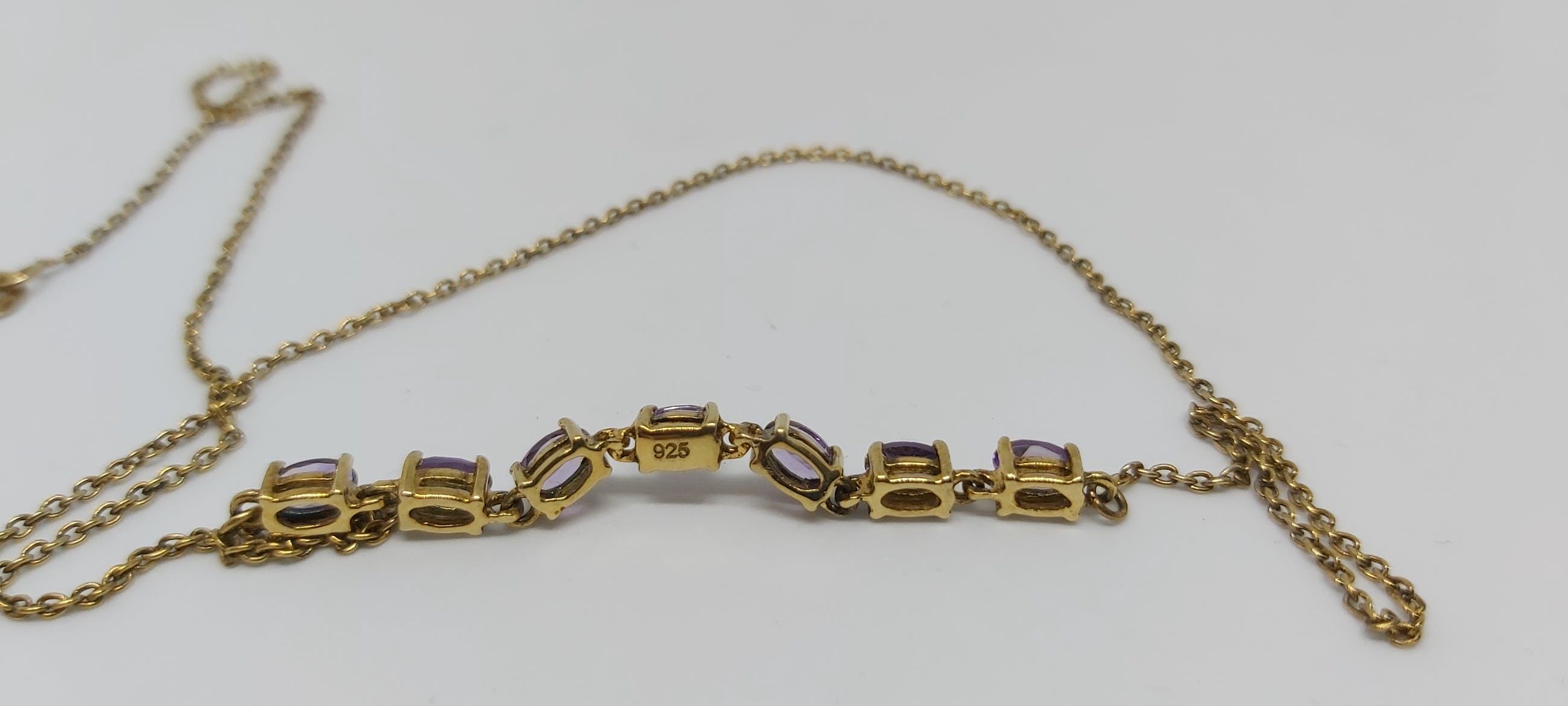 Lengte = 45 cm Gemerkt "925" op ketting en achterzijde Amethisten. Maat Amethisten ong. (7x) 4 x 3 mm. Totaal gewicht = 3,85 gram.
