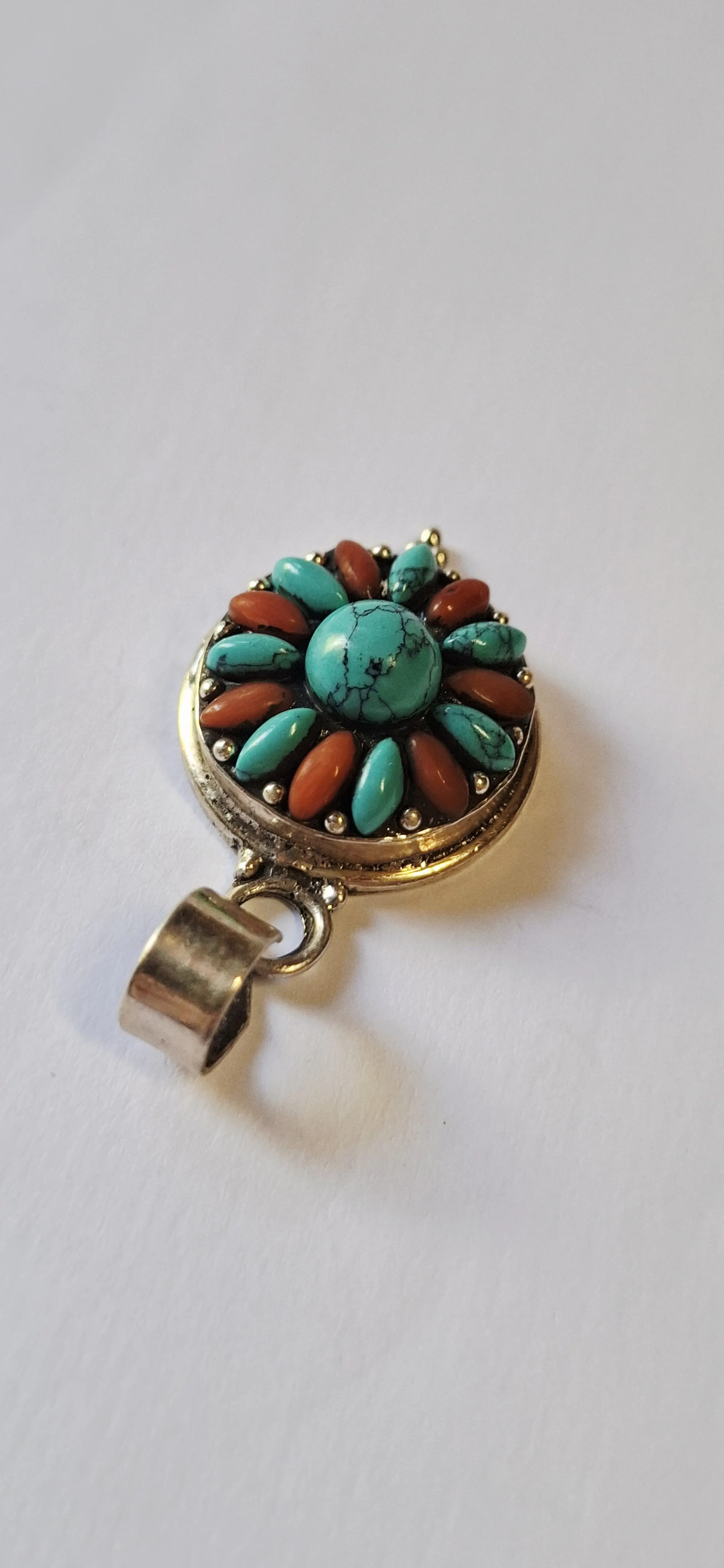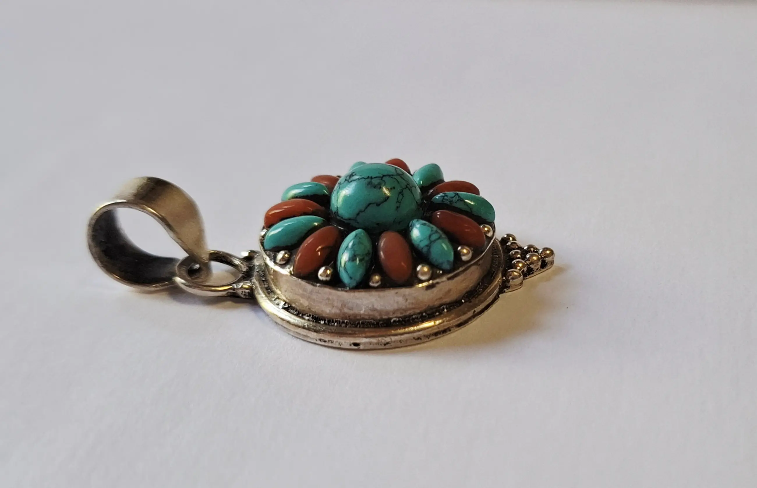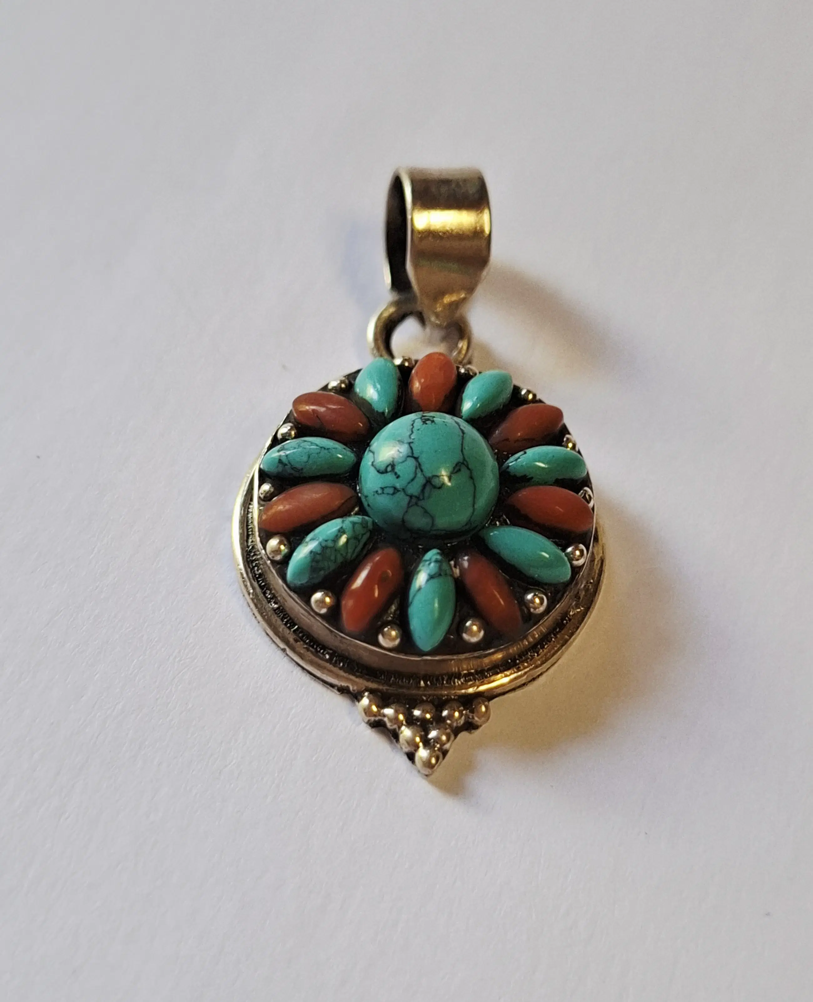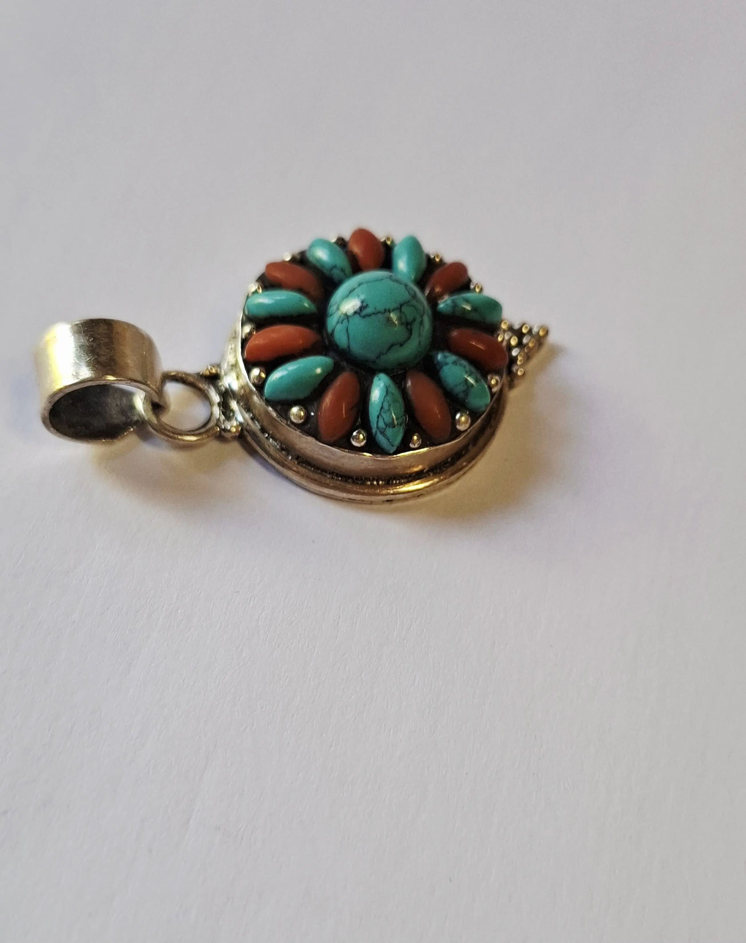 Mooie sierlijke zilveren hanger, met de hand gemaakt door de Native American zilversmeden van de Navajo 1910. De hanger is gezet met een prachtige turquoise en koralen welke in het echt veel meer naar turquoisekleur neigt en koraal dan ik het op de foto krijg. Turkoois wordt geassocieerd met de lucht en het brengen van hemelenergie naar de aarde. Het staat bekend als een steen voor meesterlijke genezing, omdat men gelooft dat het genezingsproces erdoor wordt versneld. Turkoois kan ook eerlijke en heldere communicatie vanuit het hart bevorderen. Turkoois komt voor in alle tinten blauw, van blauwgroen tot blauwgroen, en het zijn de natuurlijke variaties in turkoois die de steen aantrekkelijk maken. De kleur van turkoois in Indiaanse sieraden varieert van bruingroen tot helderblauw. Turkoois wordt gevonden in aders tussen lagen moedergesteente en kan in de matrix of adering iets van de invloed van het moedergesteente laten zien. De kleuren van de matrix variëren van blauw tot goudbruin tot zwart en soms met gouden spikkels. Veel mensen geven de voorkeur aan turkoois met matrix boven heldere stenen. Komt uit een prive Collectie Ennis nog nooit gedragen .meer dan 135 jaar oud . Eigelijk is het nog nieuw voor meer dan 135 jaar oude Navajo hanger. Onieuw Getest op hoogste zilvergehalte 925 Word goed verpakt en verzekerd verzonden met track en trace