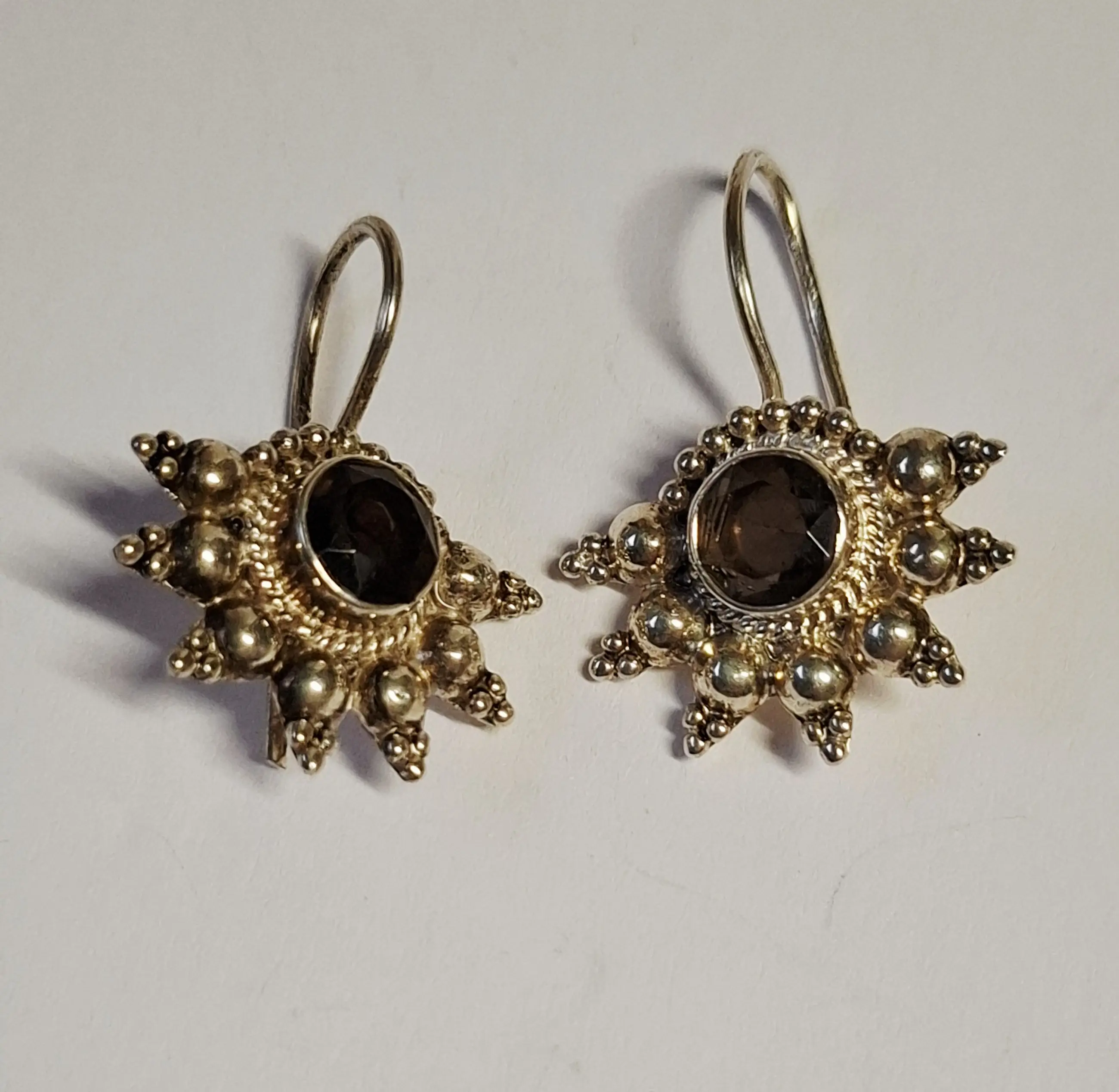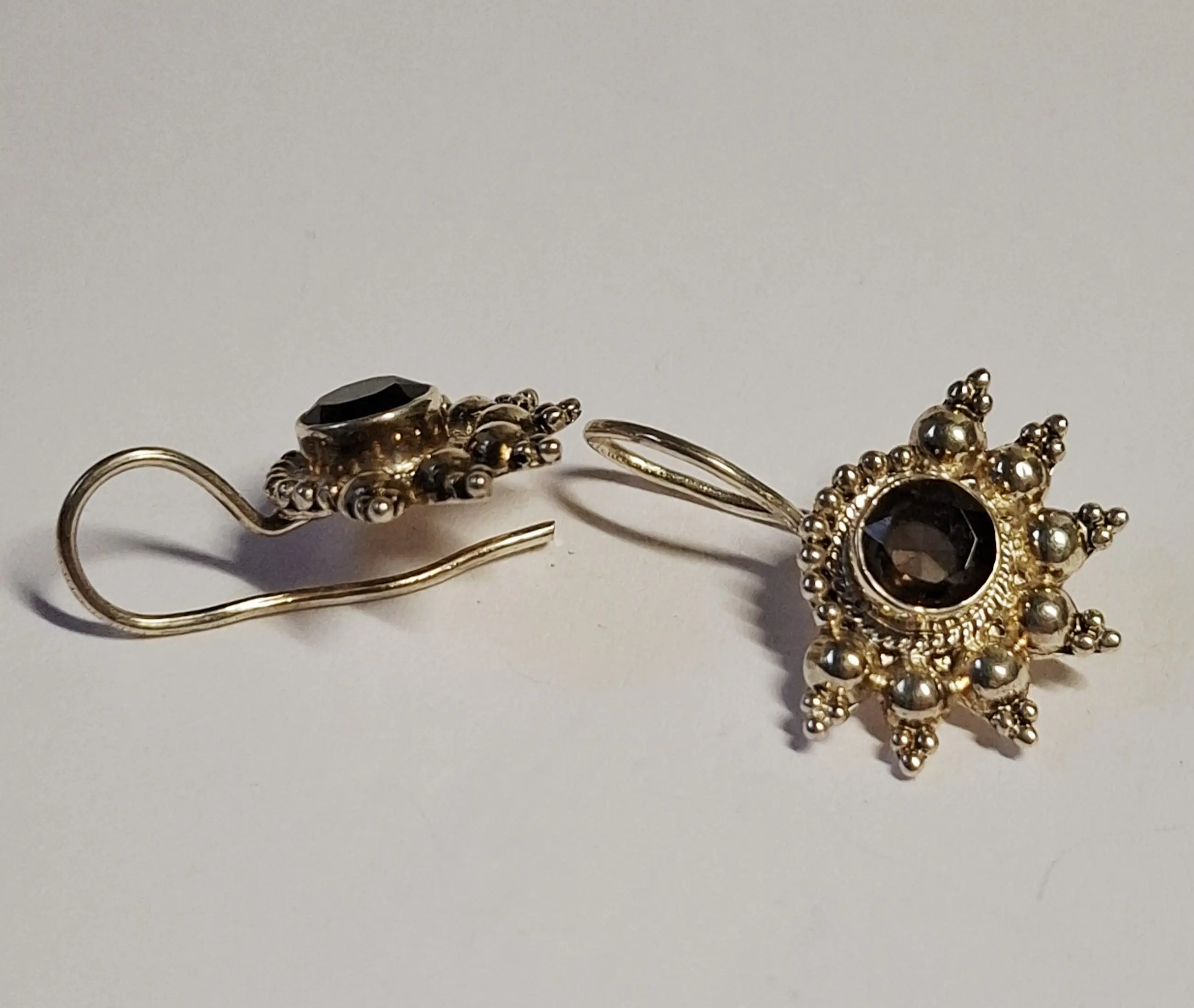 Nieuwe zilveren Oorbellen met gefacetteerde rookkwarts: