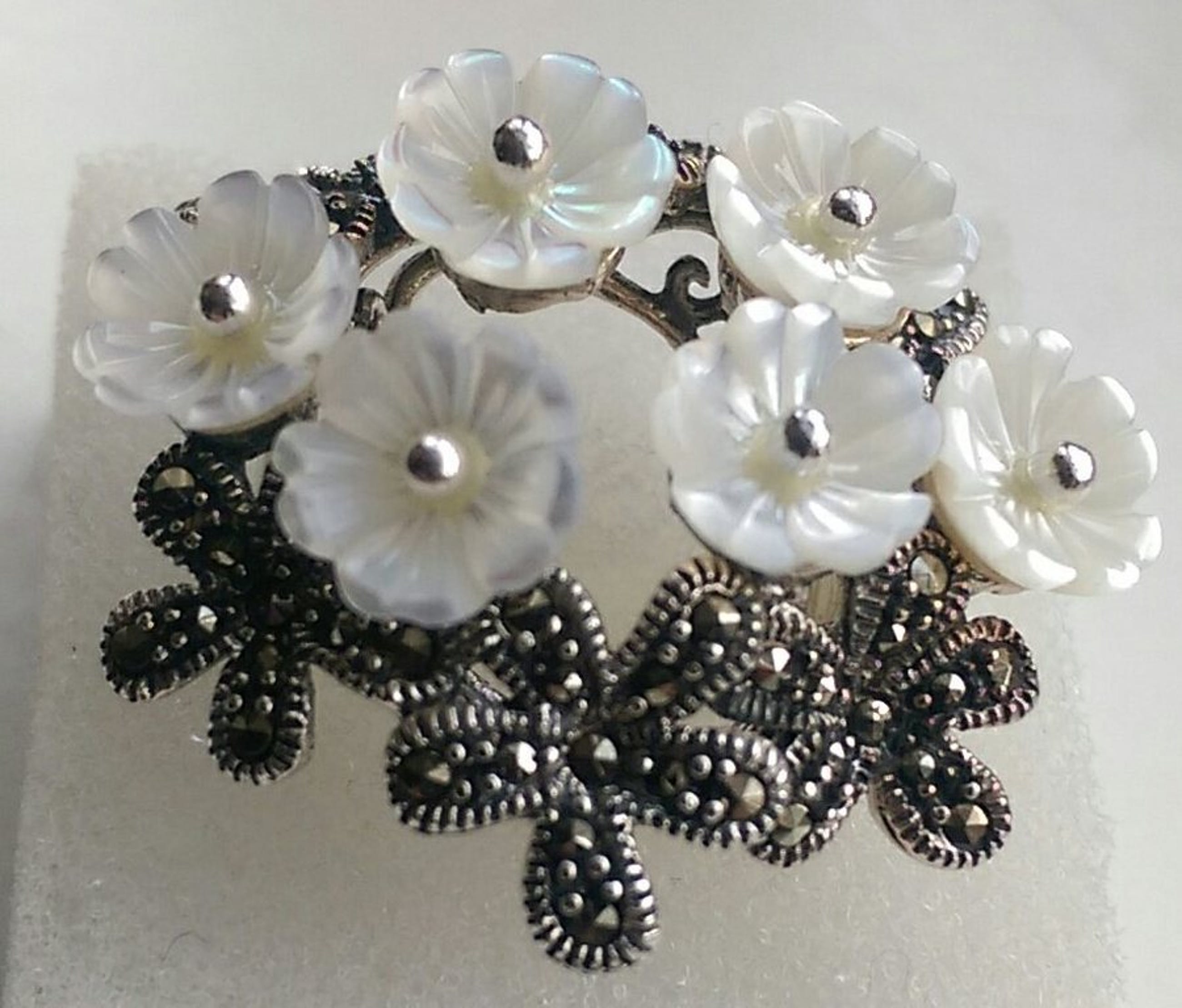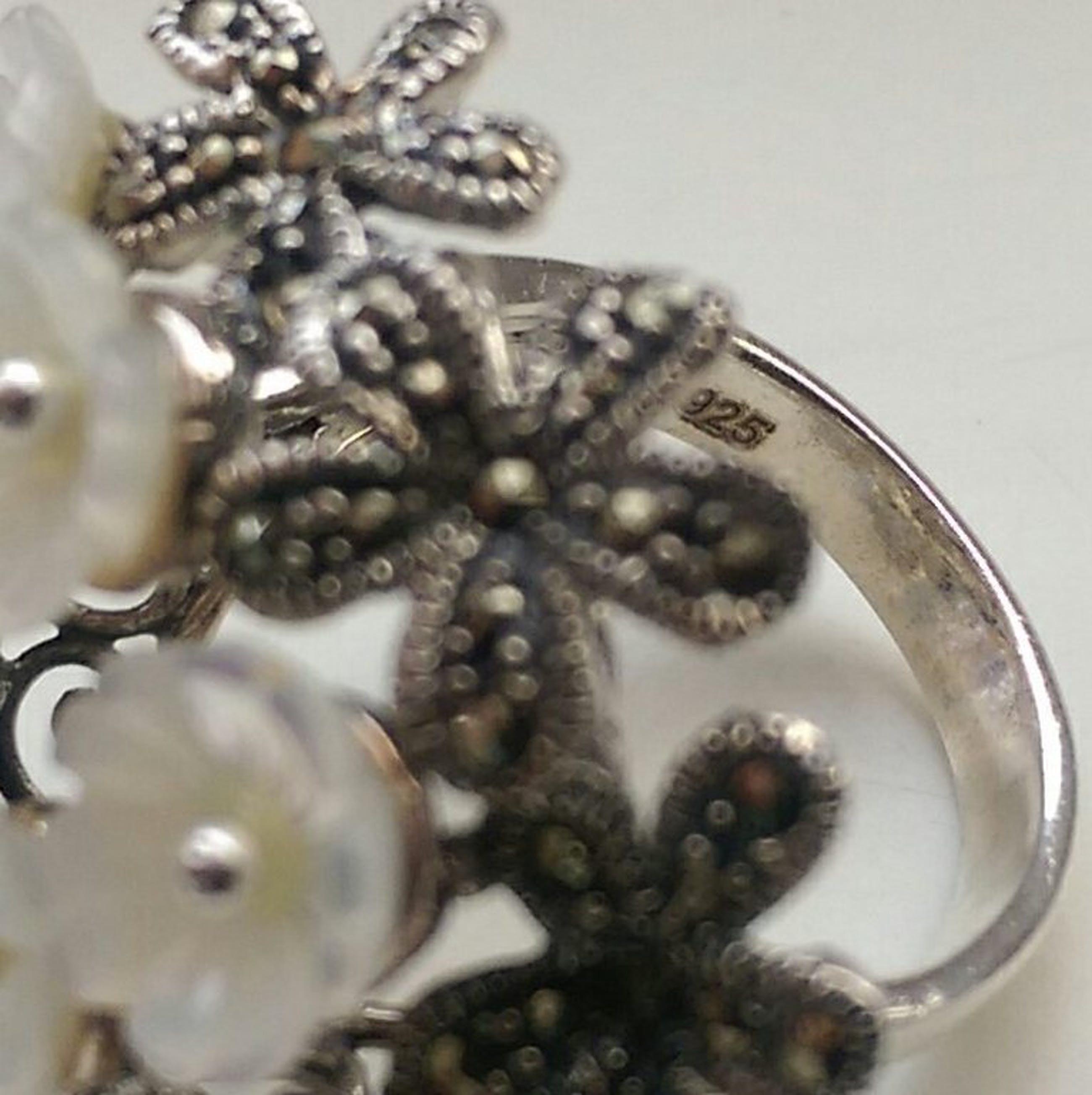 Zilveren ring met zoetwater parel en marcasiet