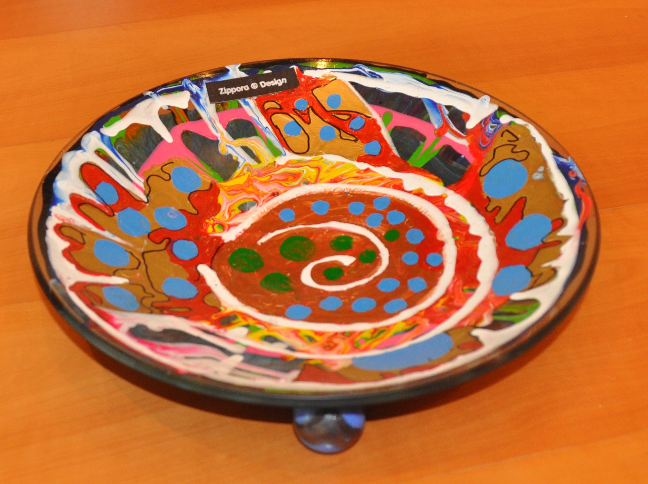 Fruitschaal Zippora design® van Zippora Meijer Er zit een logo op Bewerkt glas