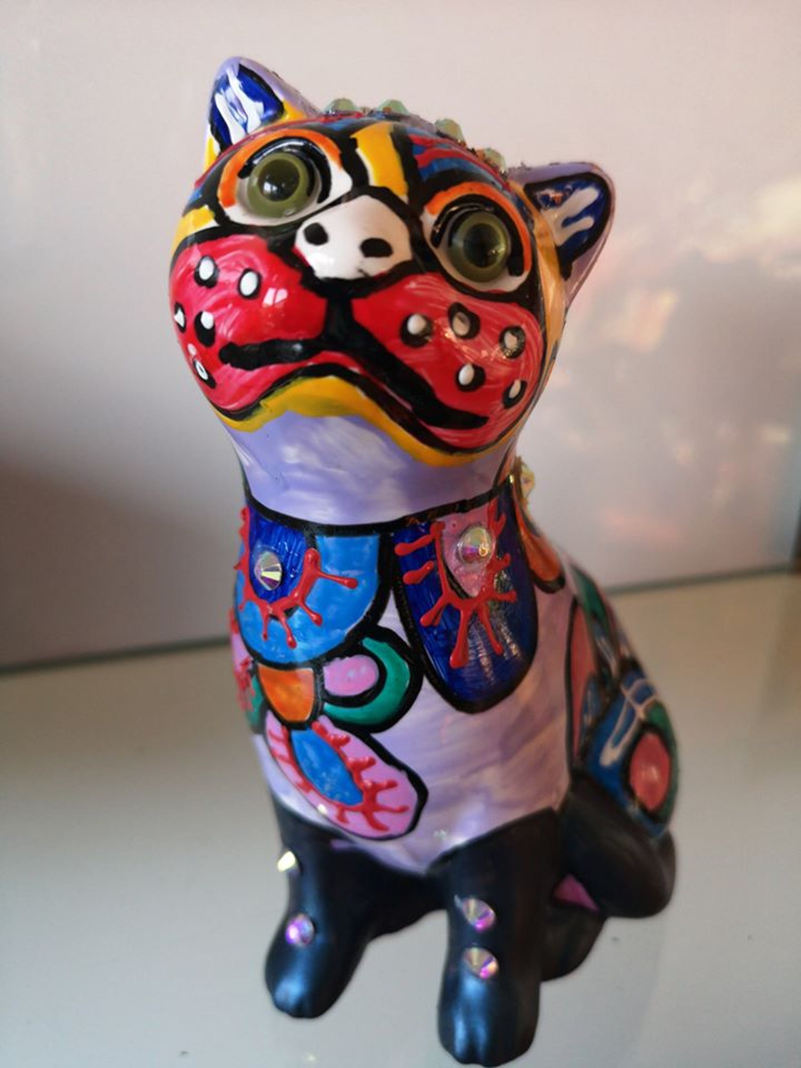 Zippora design® Beschilderde poes van keramiek Hoogte ongeveer 18 cm breedte ongeveer 10 cm Zippora Meijer staat geregistreerd bij het RKD en exposeert in het binnen en buitenland Het wordt netjes verpakt en aangetekend verzonden