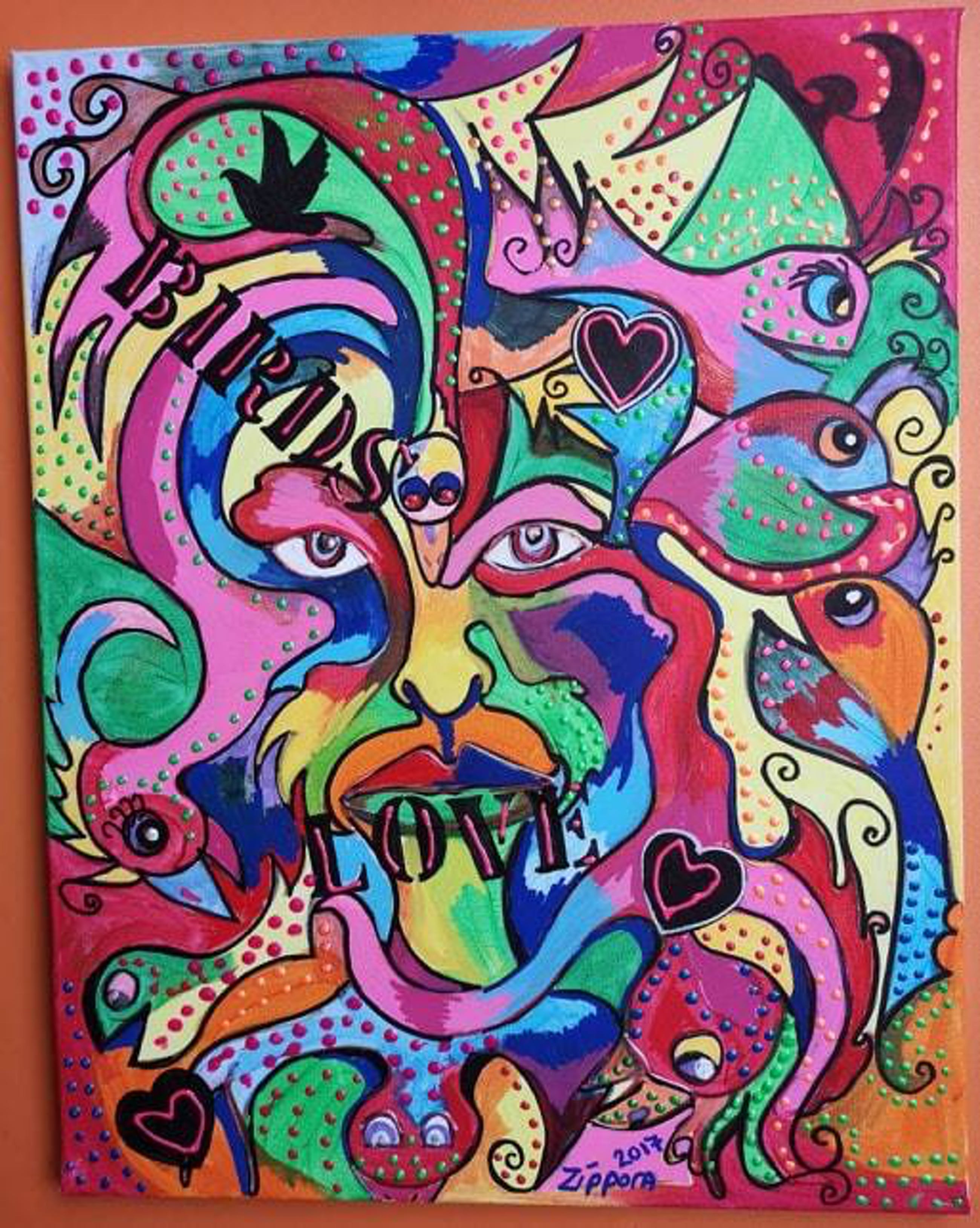 Afmeting : 40 x 50 cmGesigneerdTitel : Bird LoversJaartal : 2017Zippora Staat geregistreerd bij het RKD waardoor het werk waardevast is.Ze exposeert nationaal en internationaal.