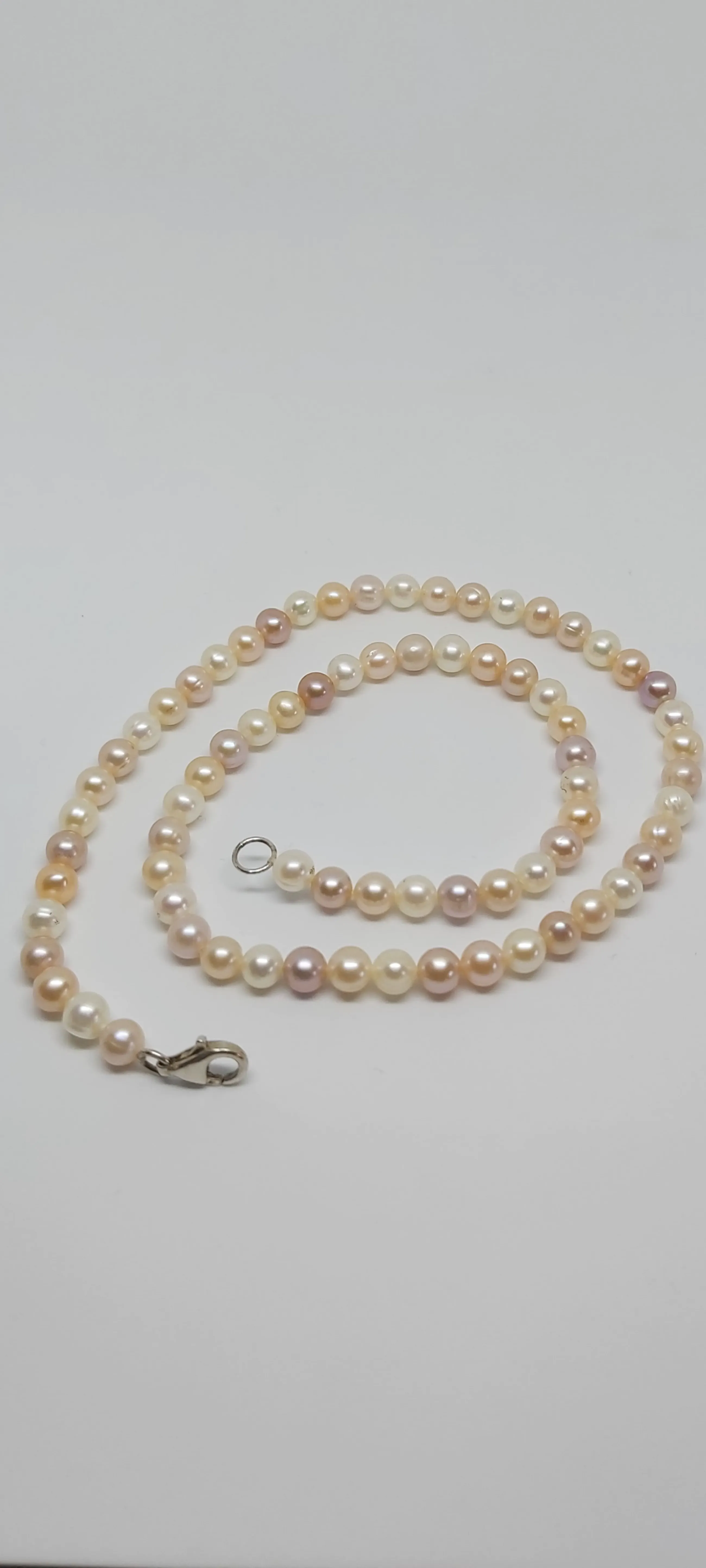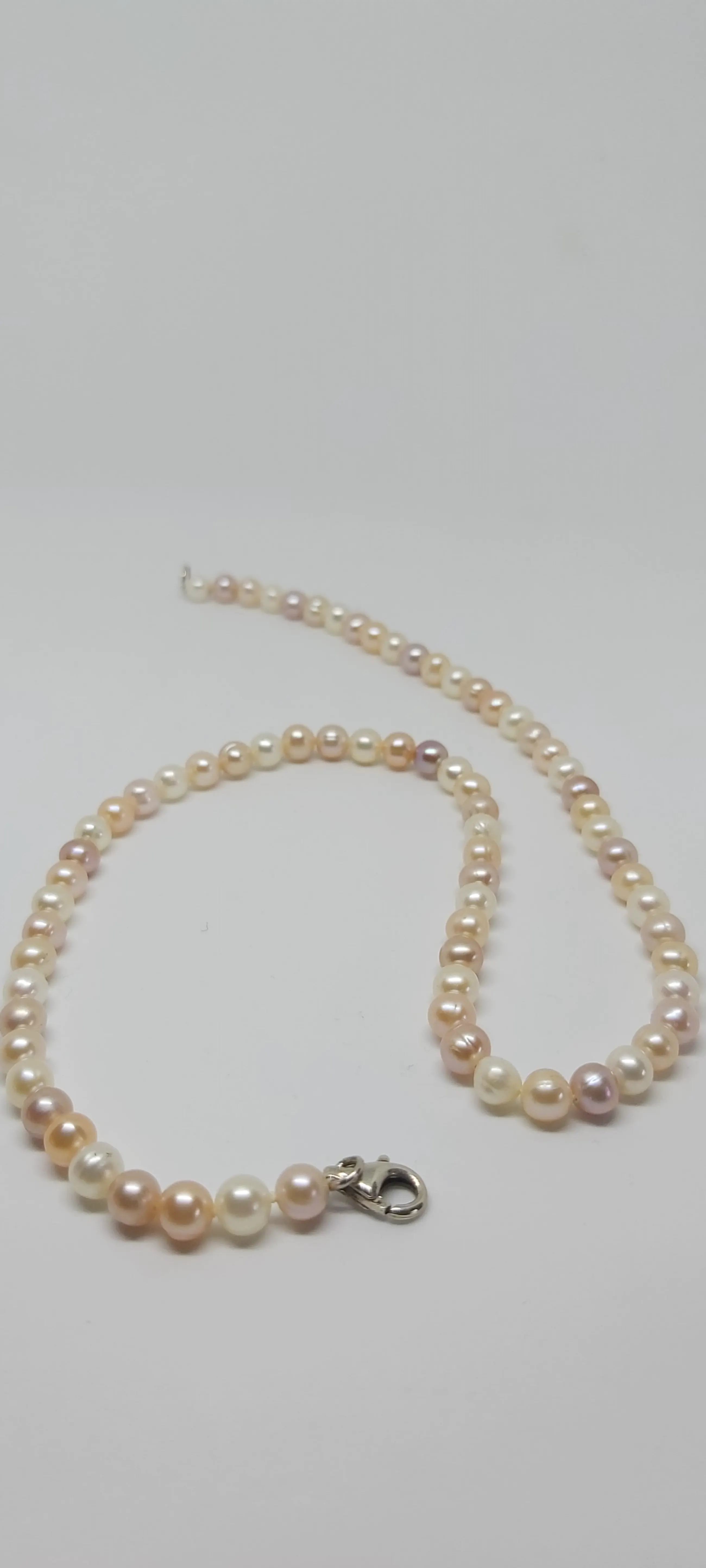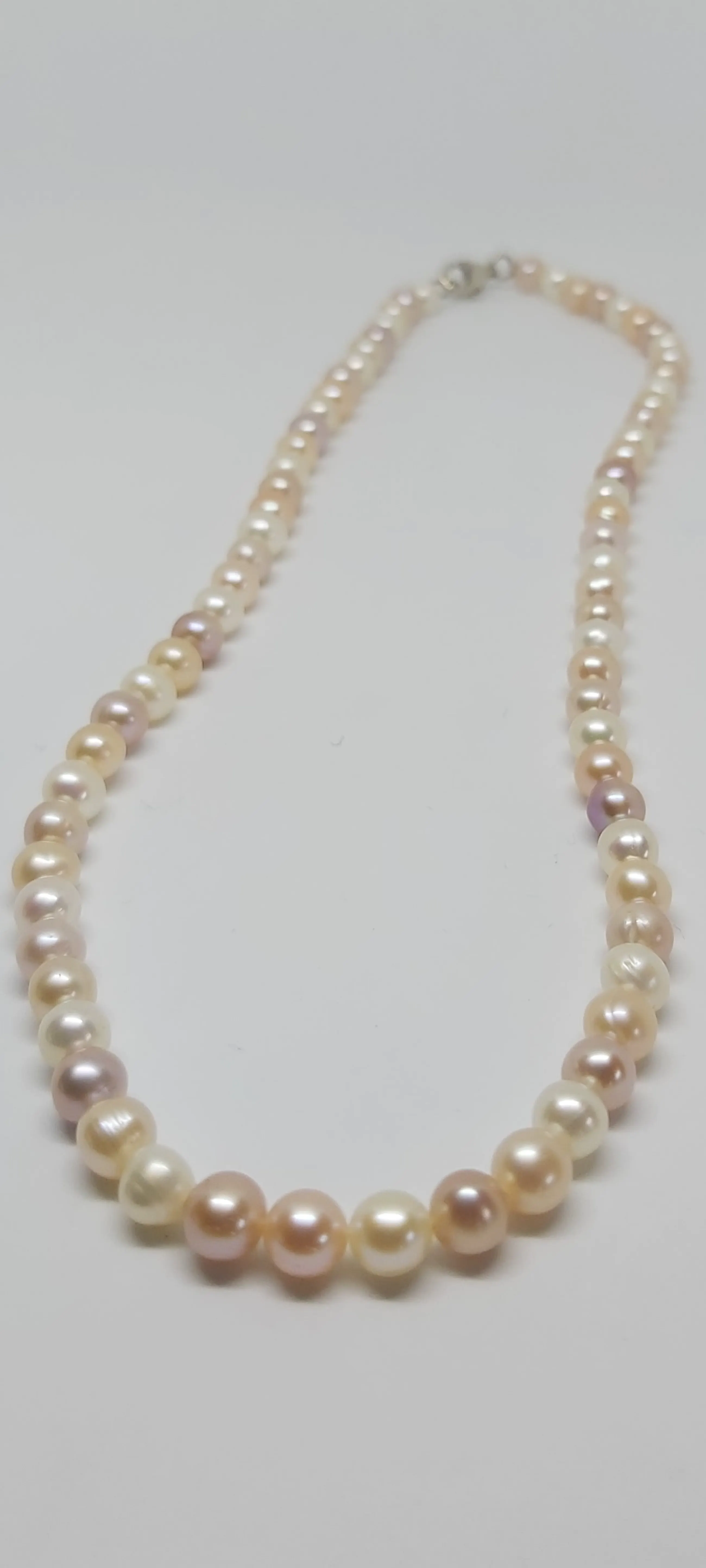 Prachtig zoetwaterparel Colier met multicolor parels en een zilver slotje.