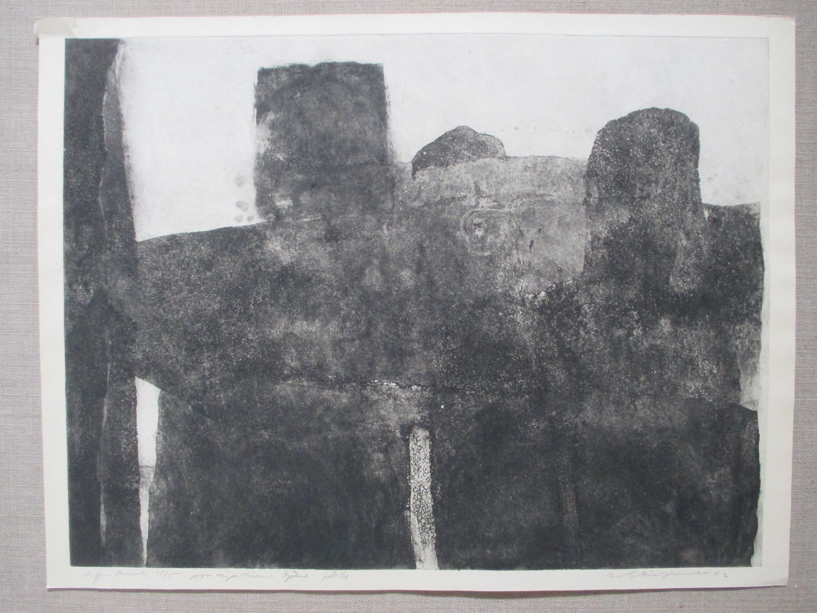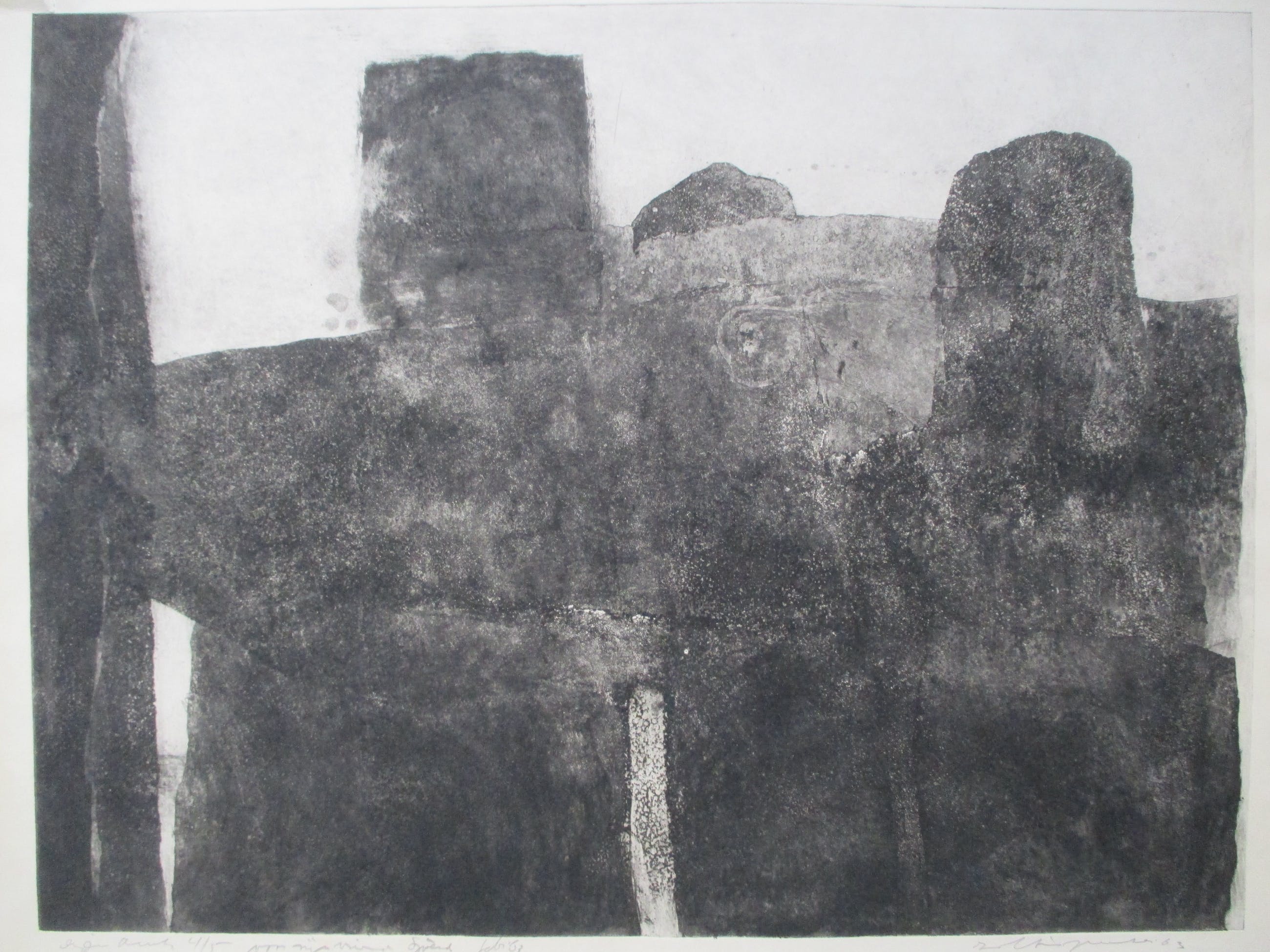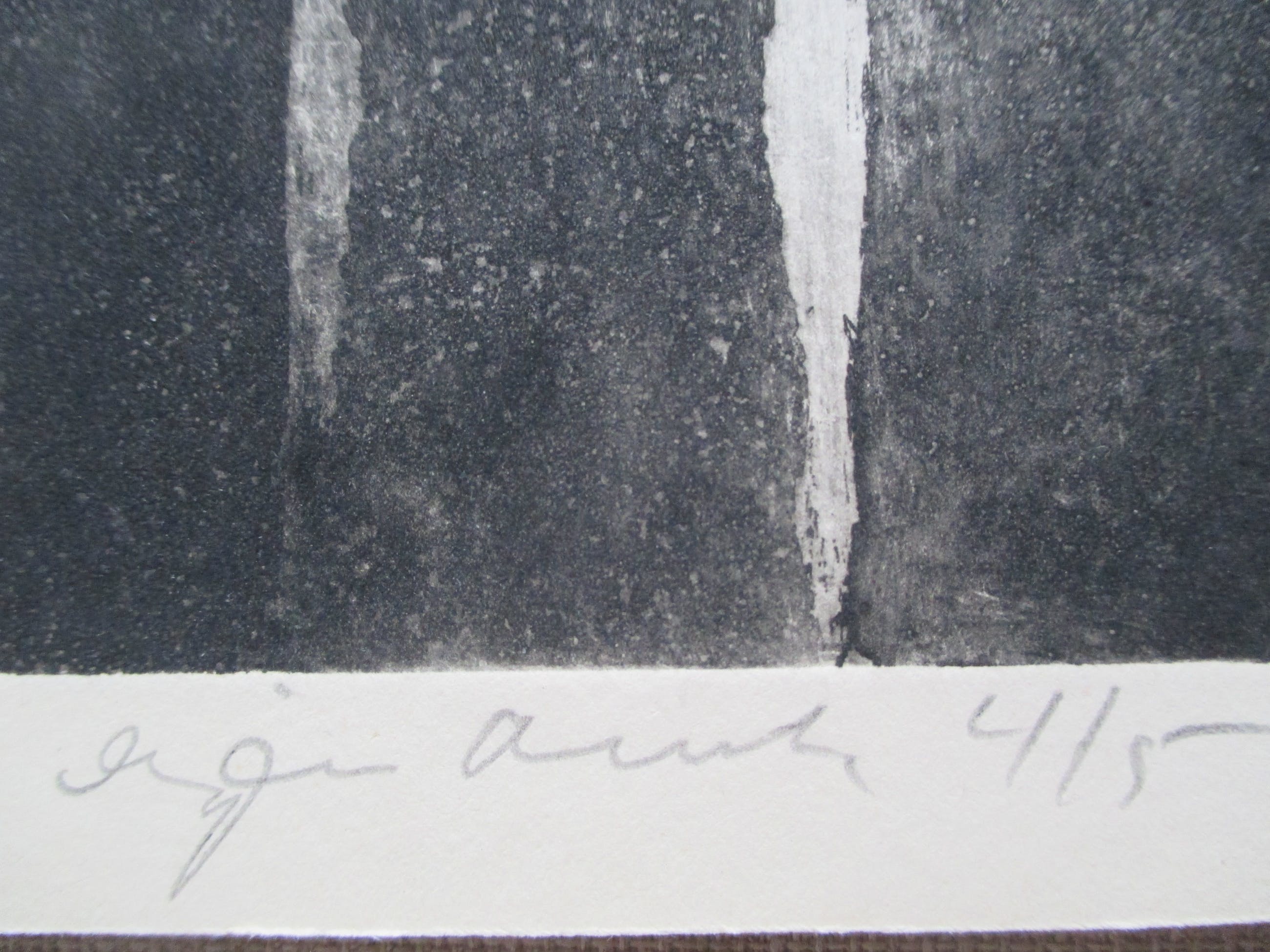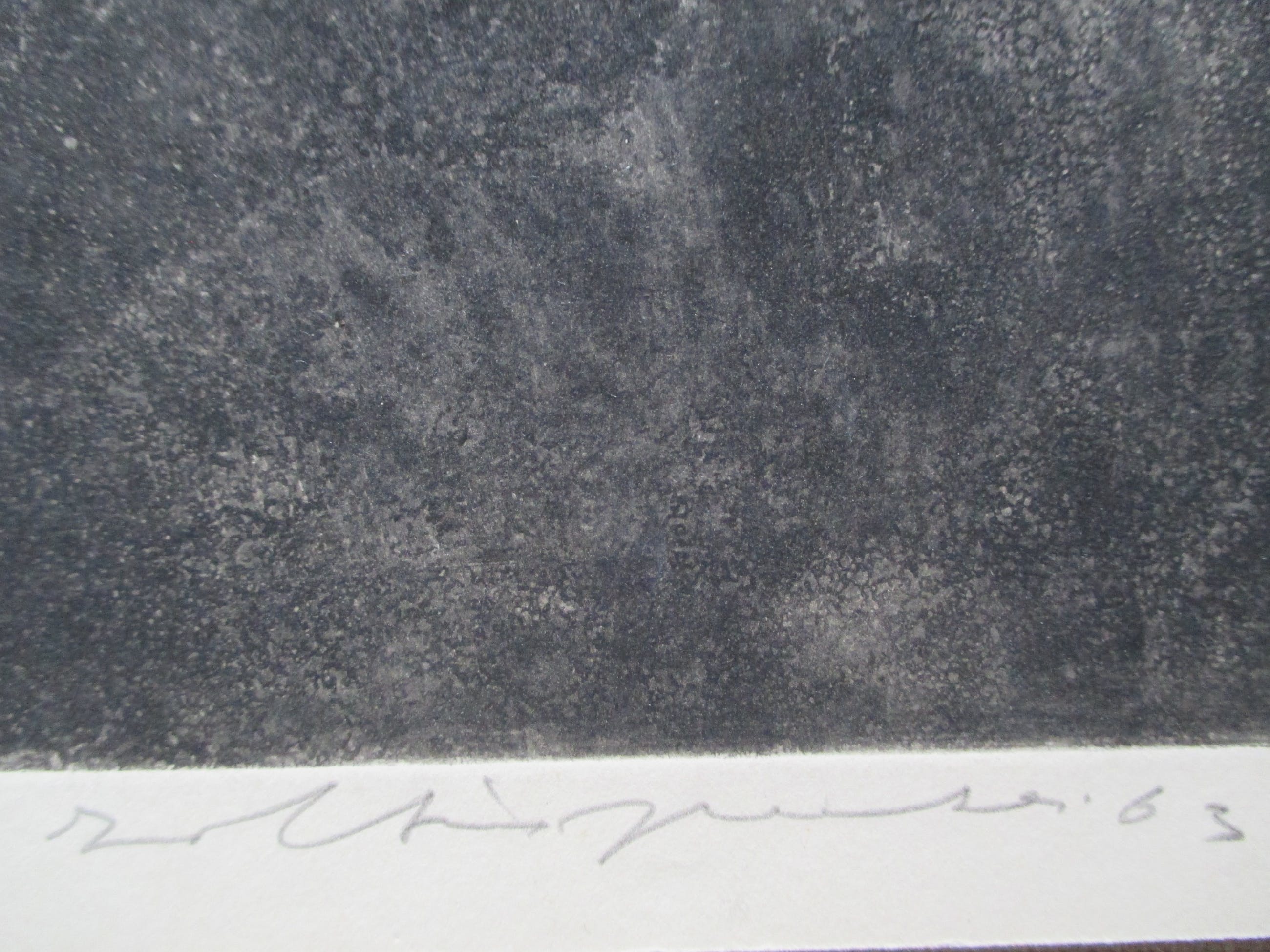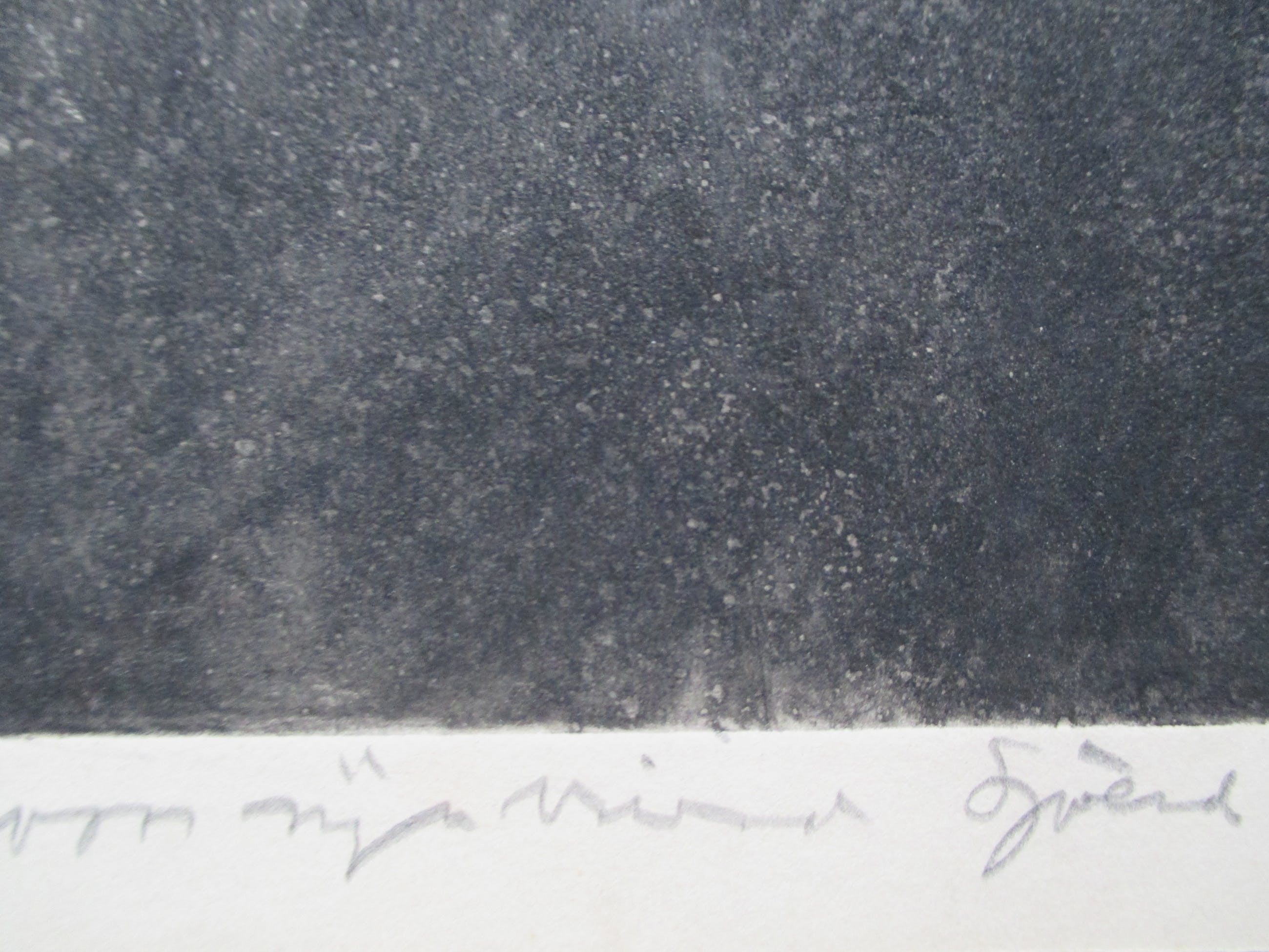 Ets uit kleine oplage van Zoltin Peeter, gesigneerd, gedateerd, genummerd in potlood. Tevens "Voor mijn vriend Sjoerd" in potlood.