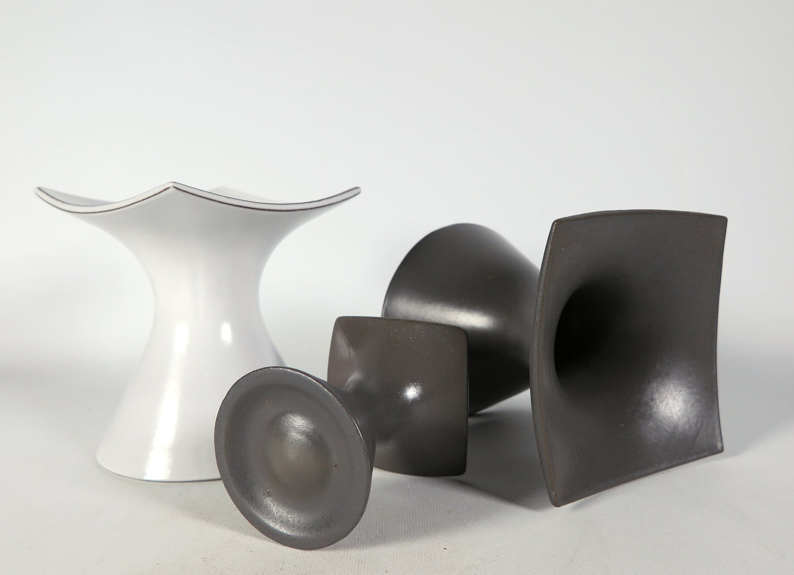 Twee grotere vaasjes: 13 x 12 x 12 cm.