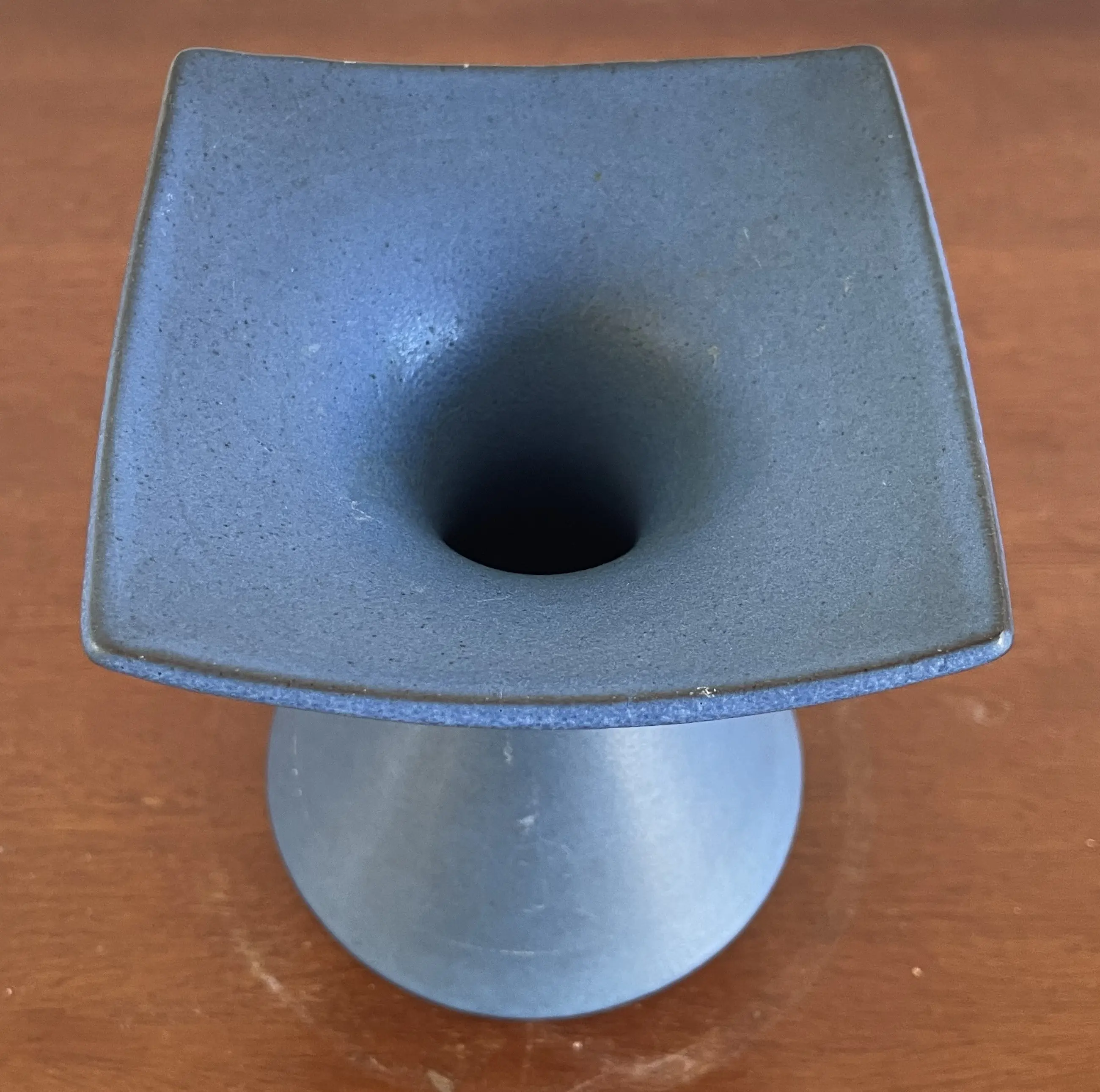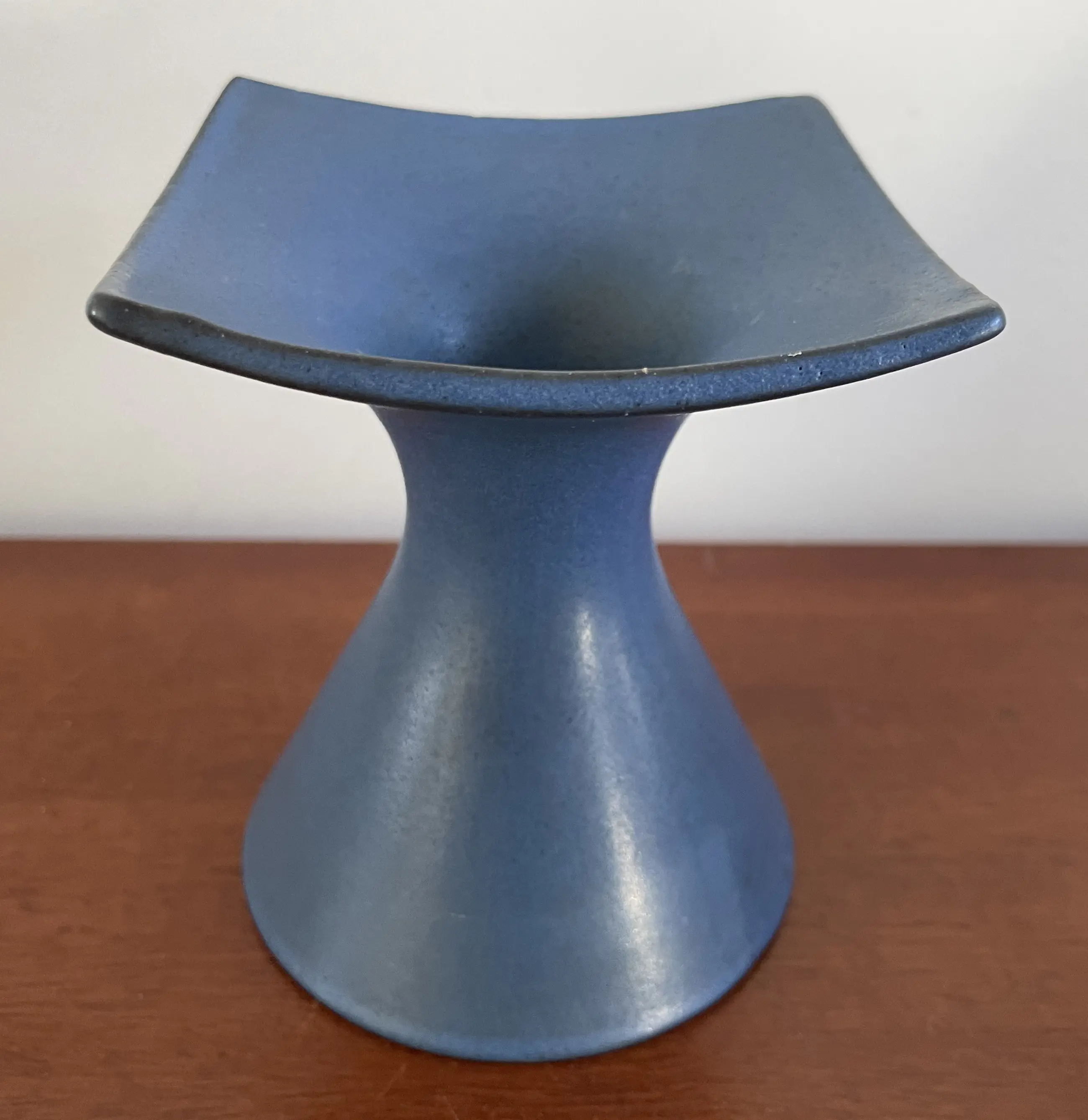 Blauw Kunstaardewerken Bouquet vaasje ontworpen in de jaren’80 voor het Keramisch Atelier Cor Unum door Zweitse Landheer, die destijds ook directeur is geweest van het atelier momenteel is het een Stichting.
