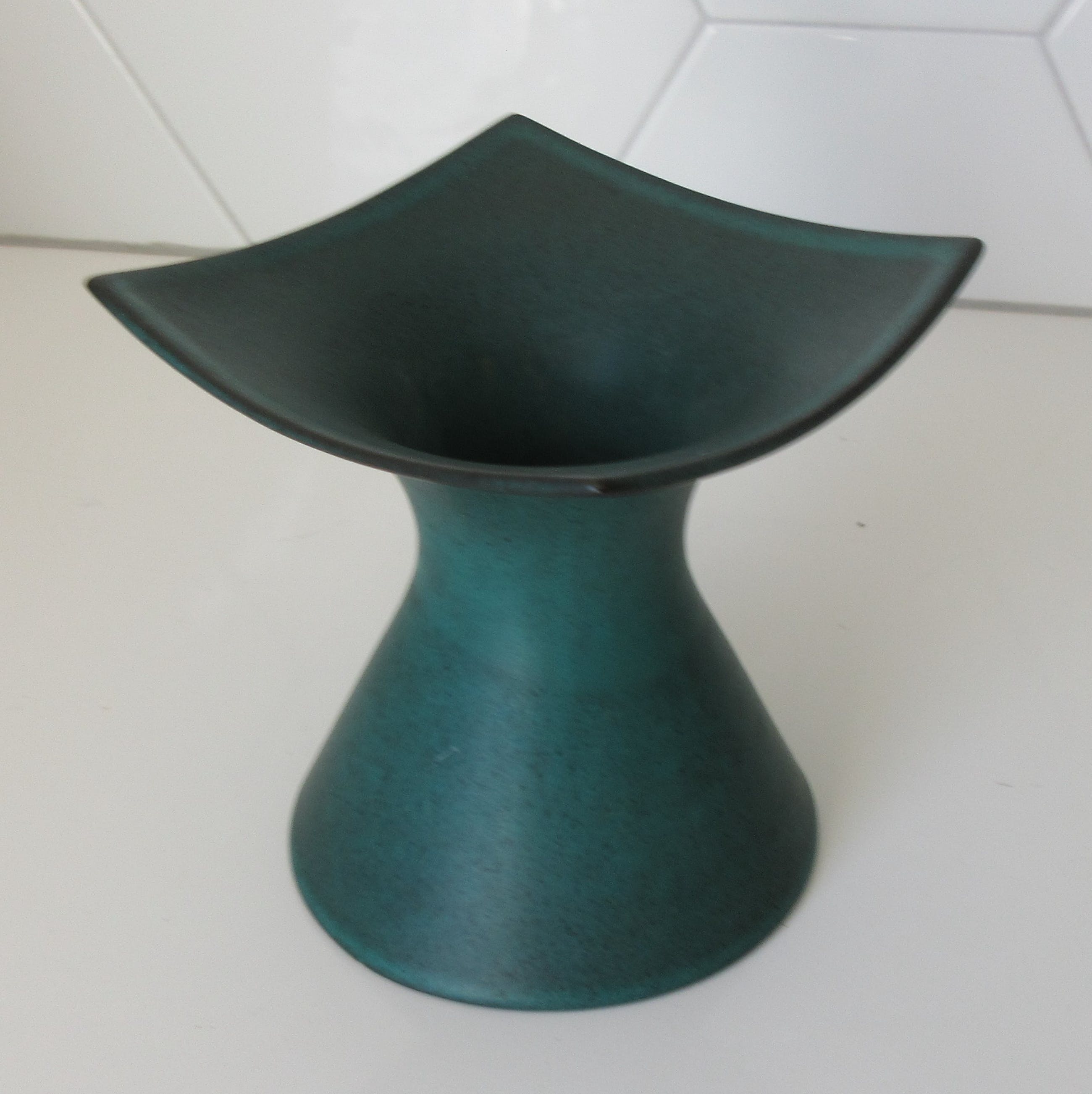 Groen aardewerk boeketvaasje - Cor Unum, ontwerp Zweitse Landheer in de jaren'70. Niet gemerkt.