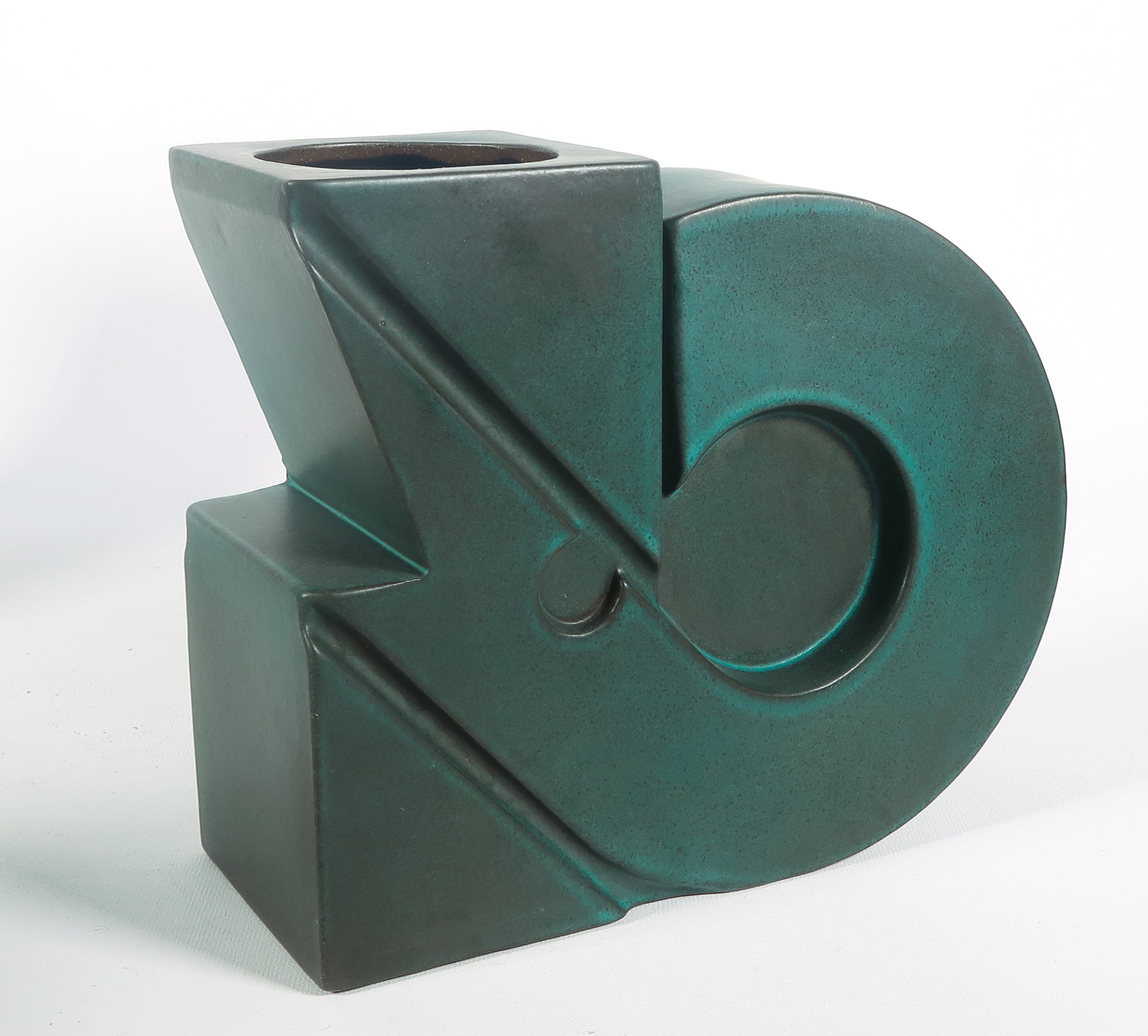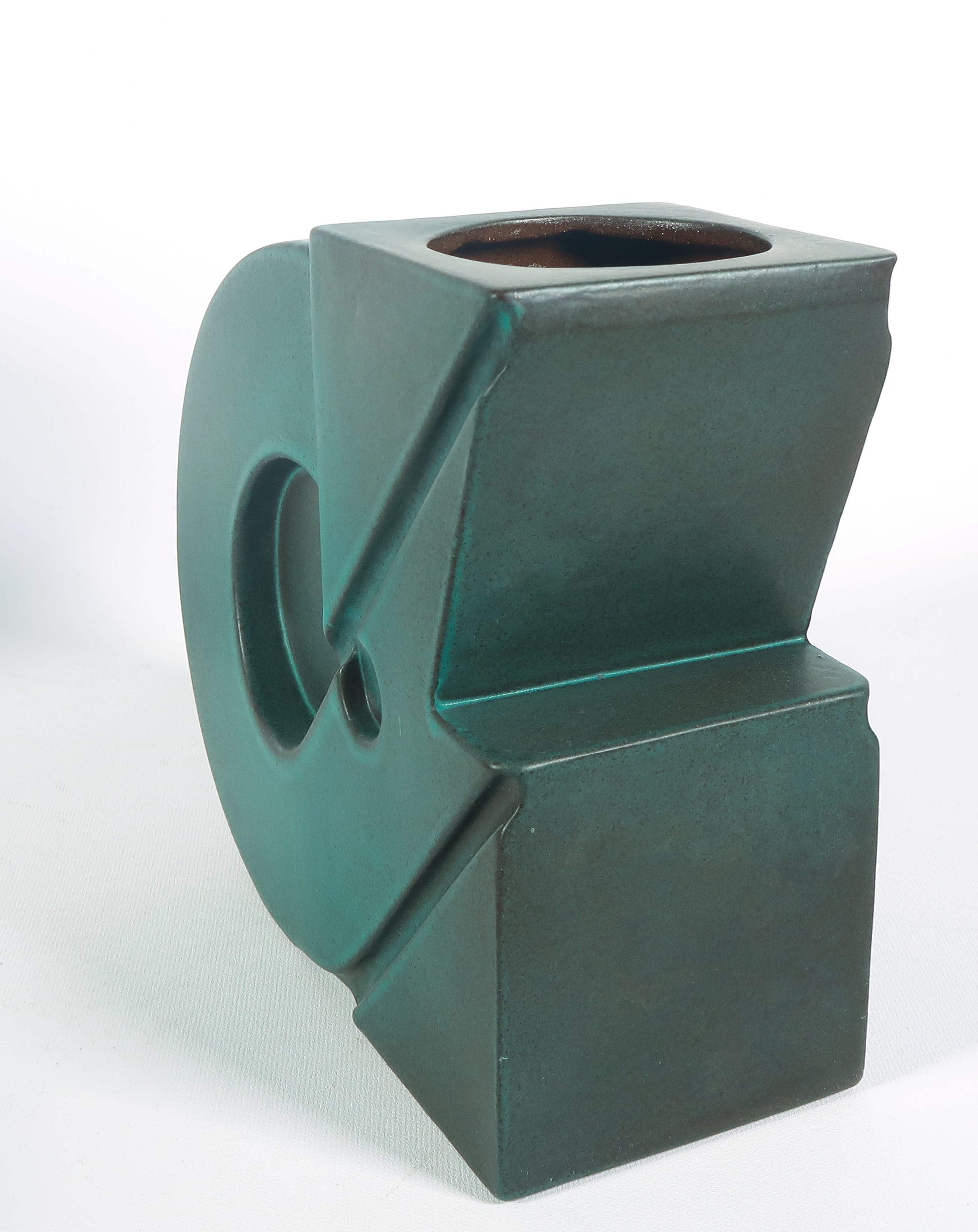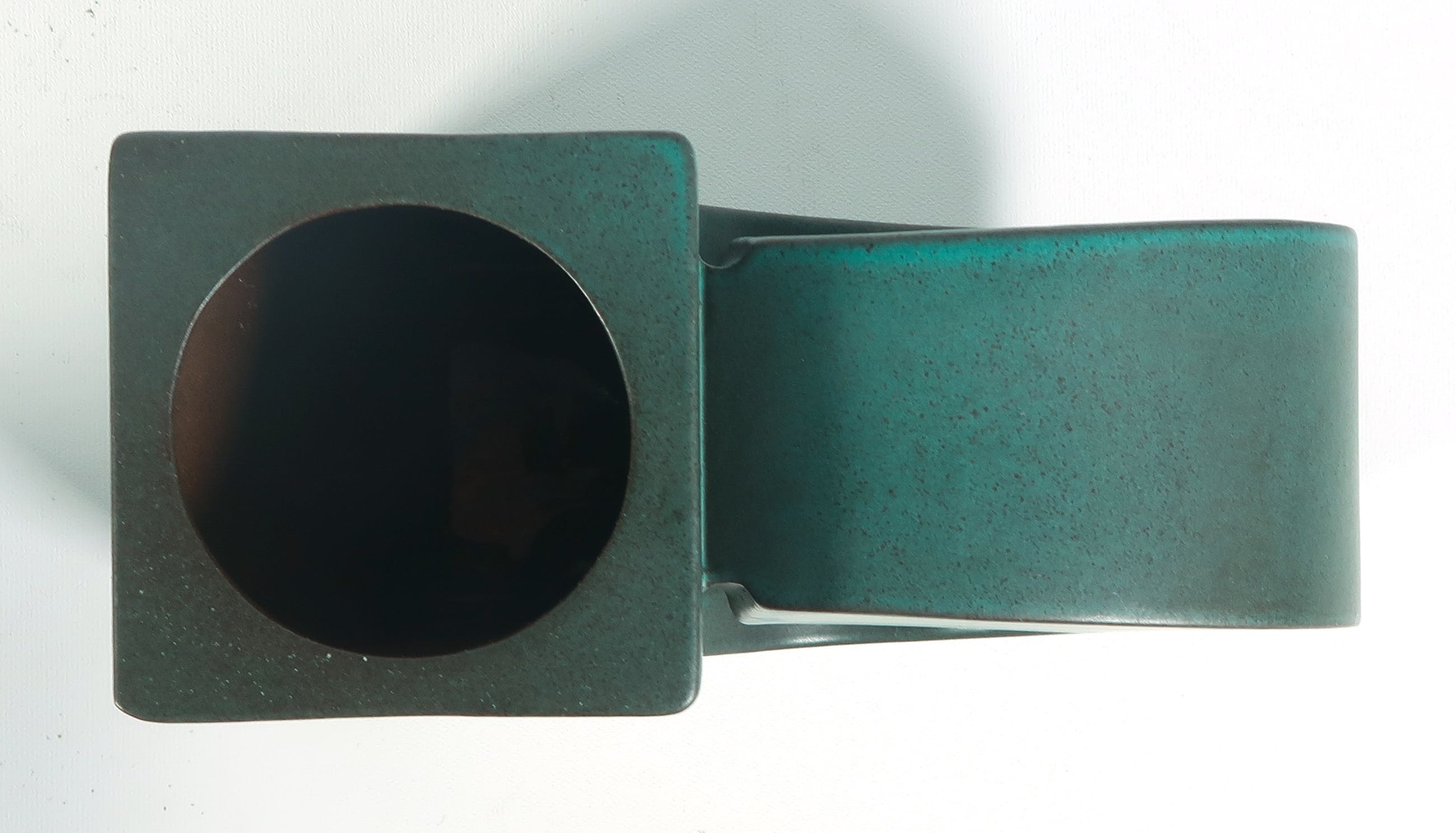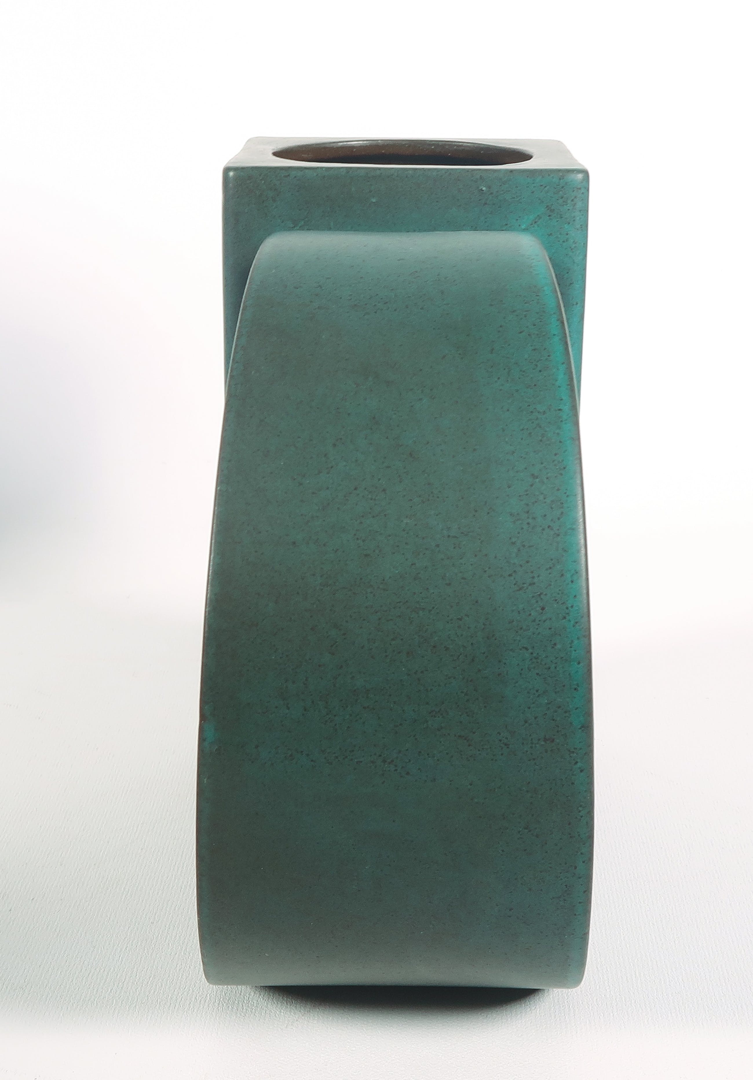 Afmetingen brede groene vaas18 x 21 x 9 cm