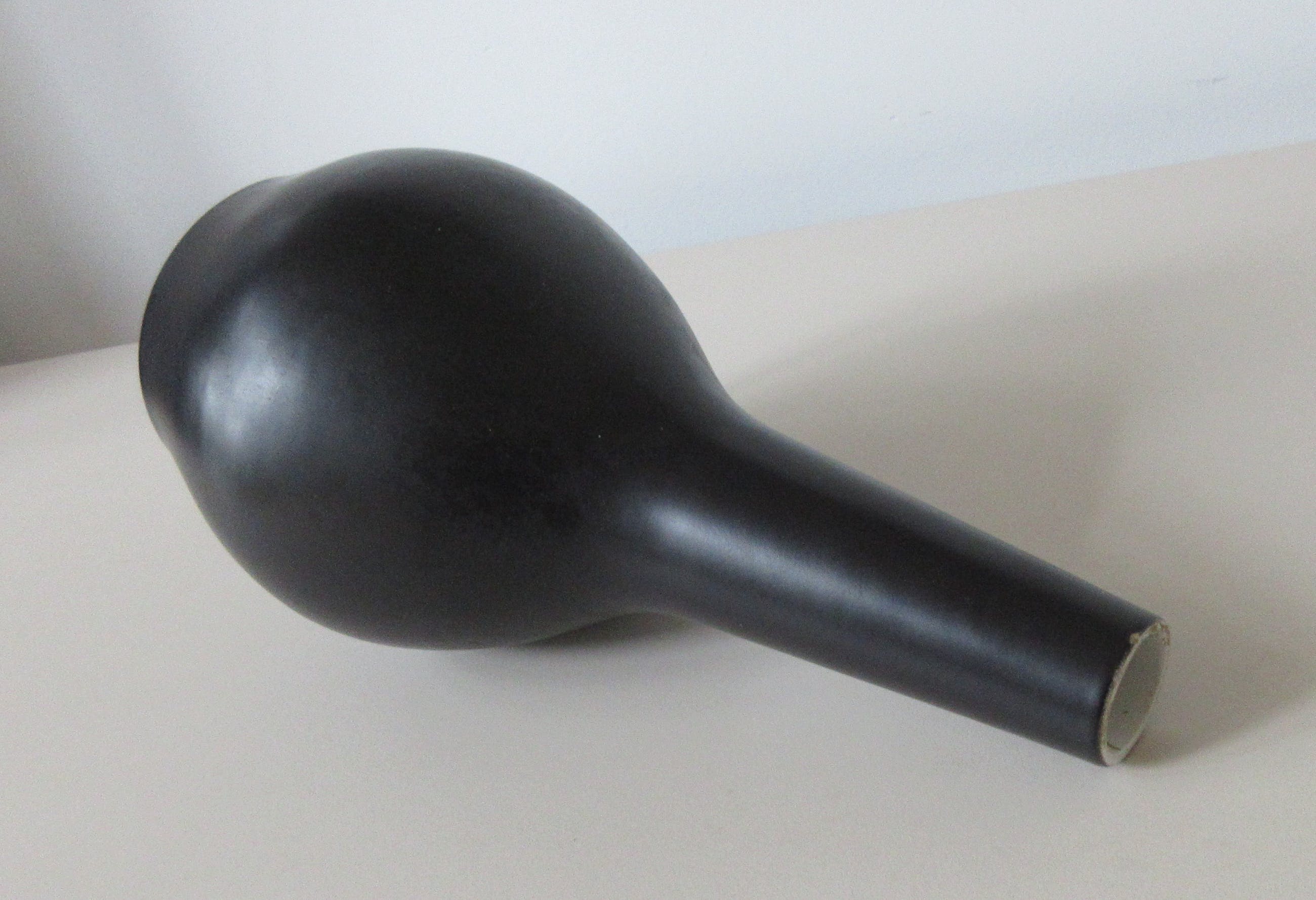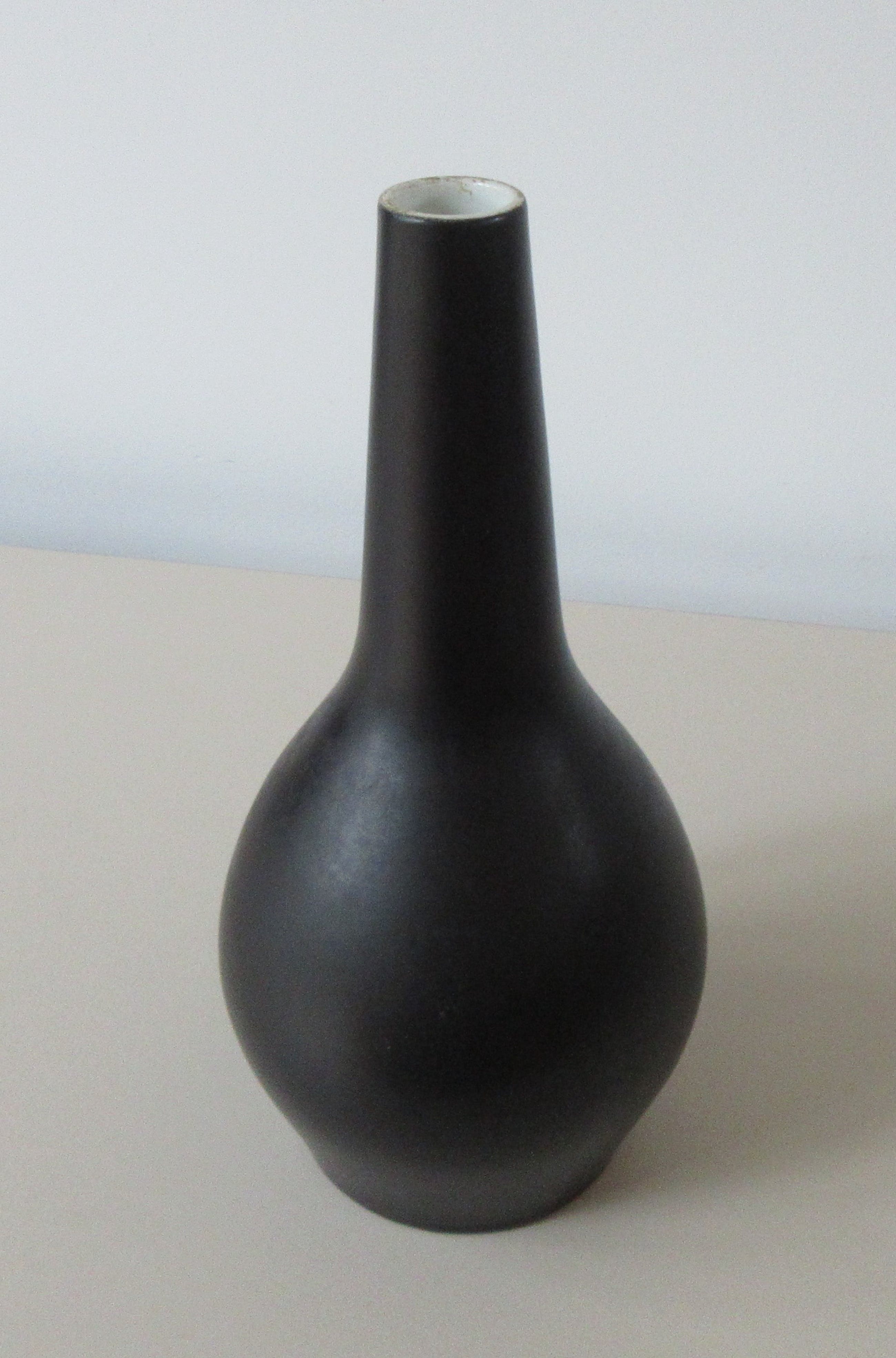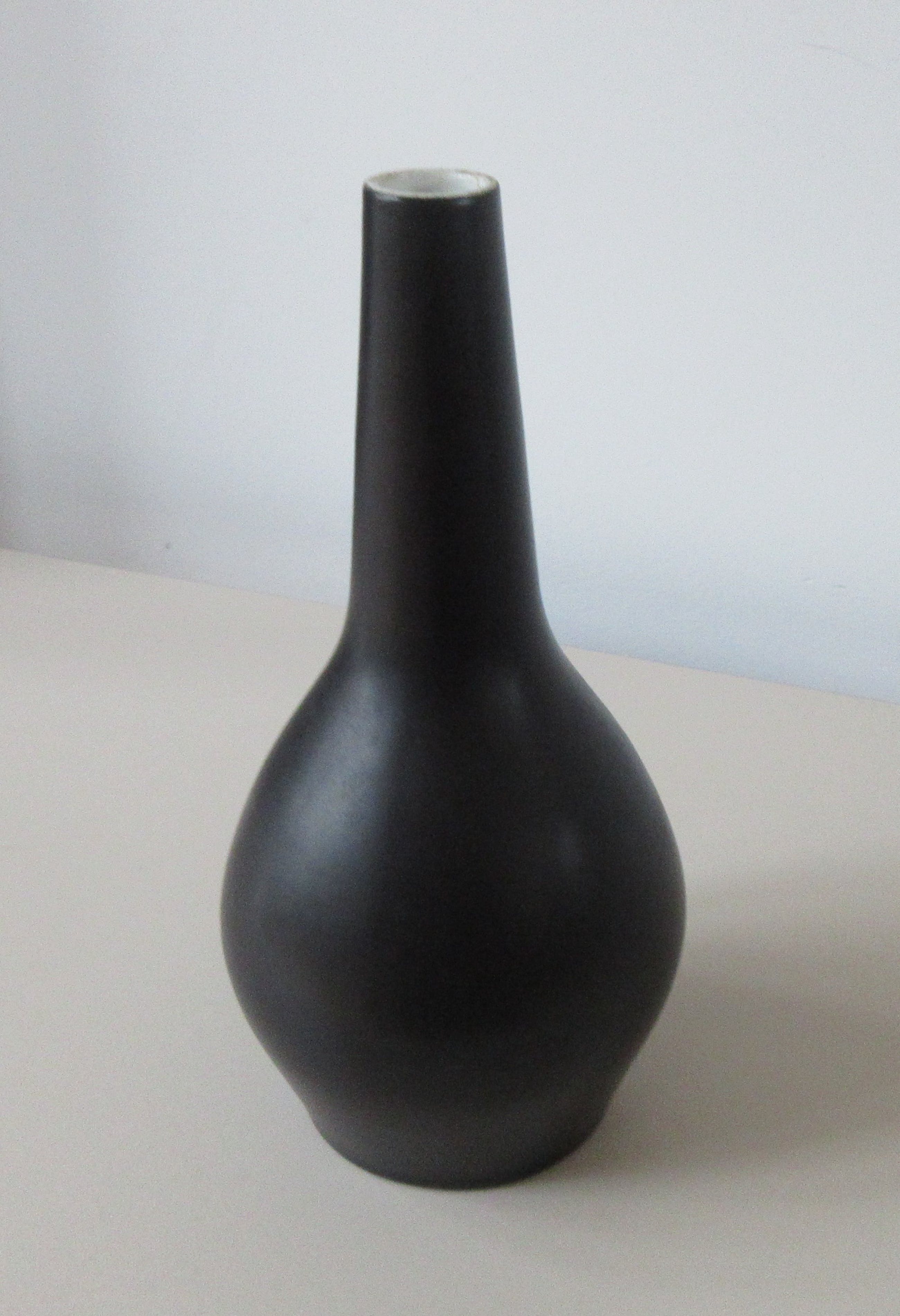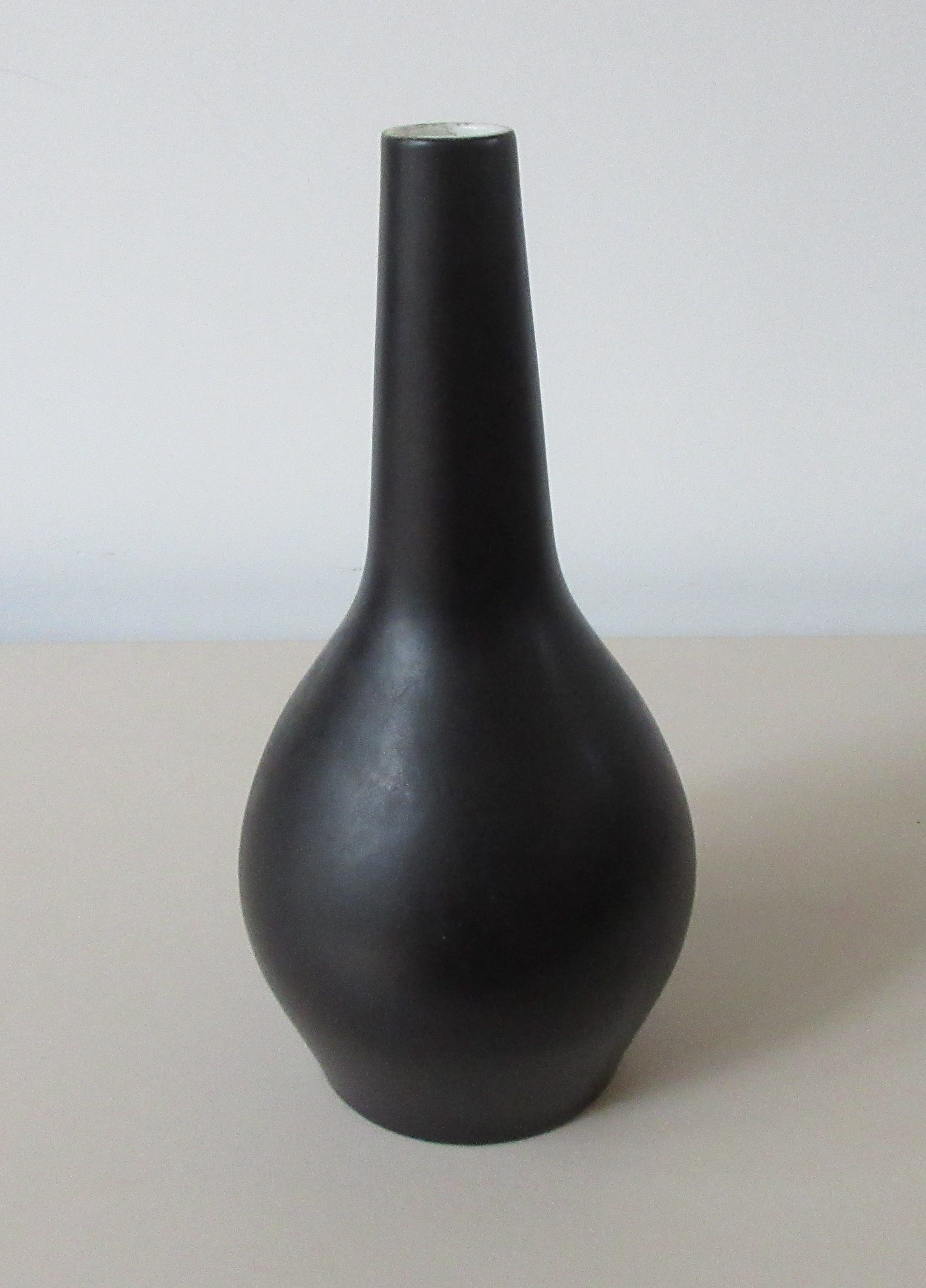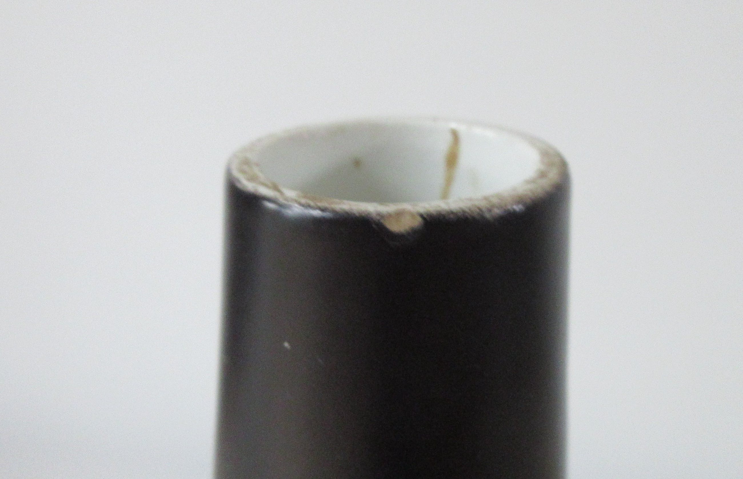 Beide vazen zijn in zeer goede conditie, alleen de zwarte vaas heeft een minimale glazuurflinter bovenaan de vaas mond.