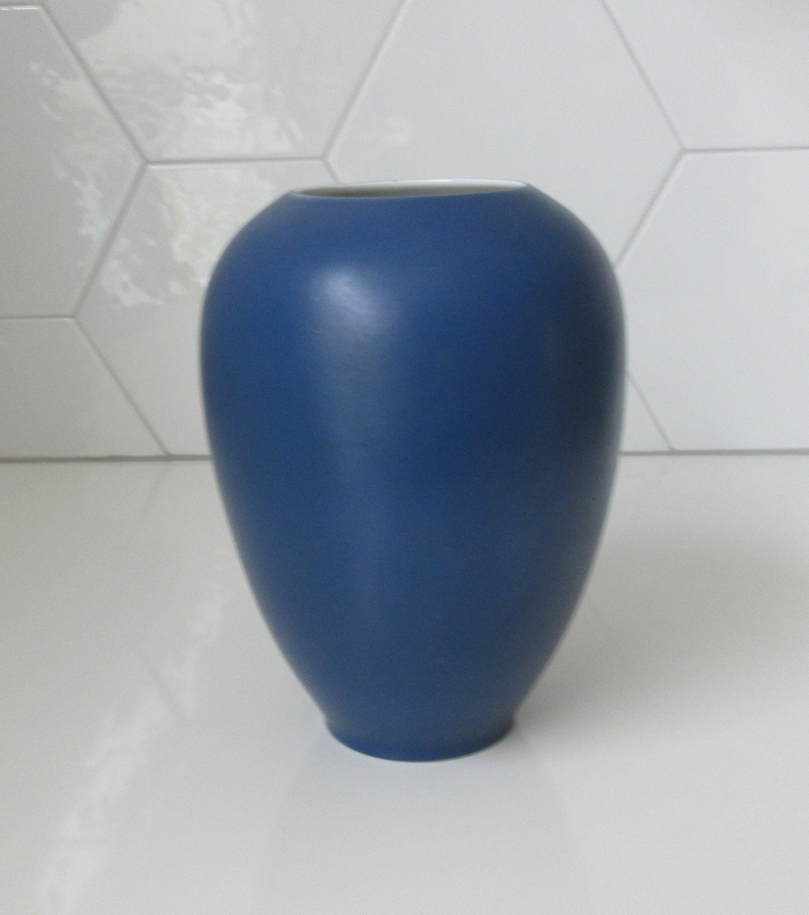 Twee platelen vazen voorzien van mat buitenglazuur in blauw en zwart en wit glanzend binnen glazuur. De vazen zijn ontworpen in een serie door Piet van Reeden of mogelijk Zweitse Landheer eind jaren '50 voor plateelfabriek Goedewaagen. De vazen zijn niet gemerkt, maar alleen voorzien van een ingedrukt modelnummer. Het betreft het model 1487 (blauw) en 1595 (zwart). Van de zwarte vaas (model 1595) staat een foto in het boek; "Koninklijke Goedewaagen 1779-1982" op pagina 143.